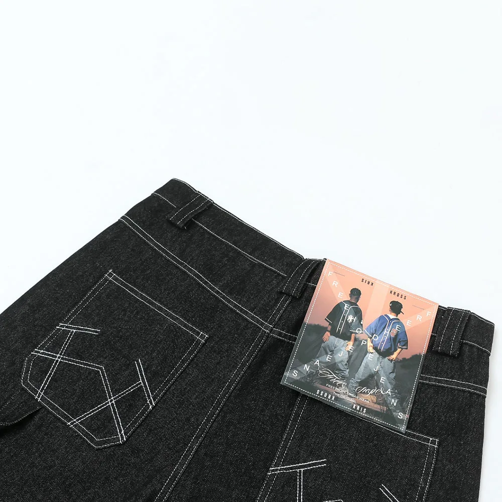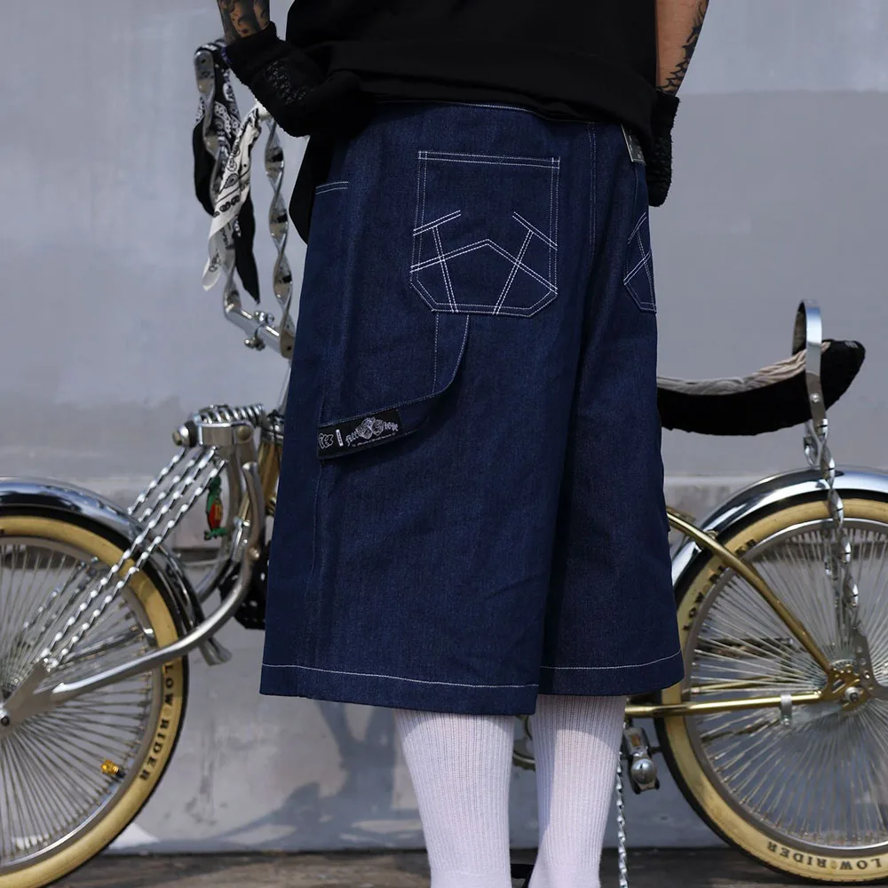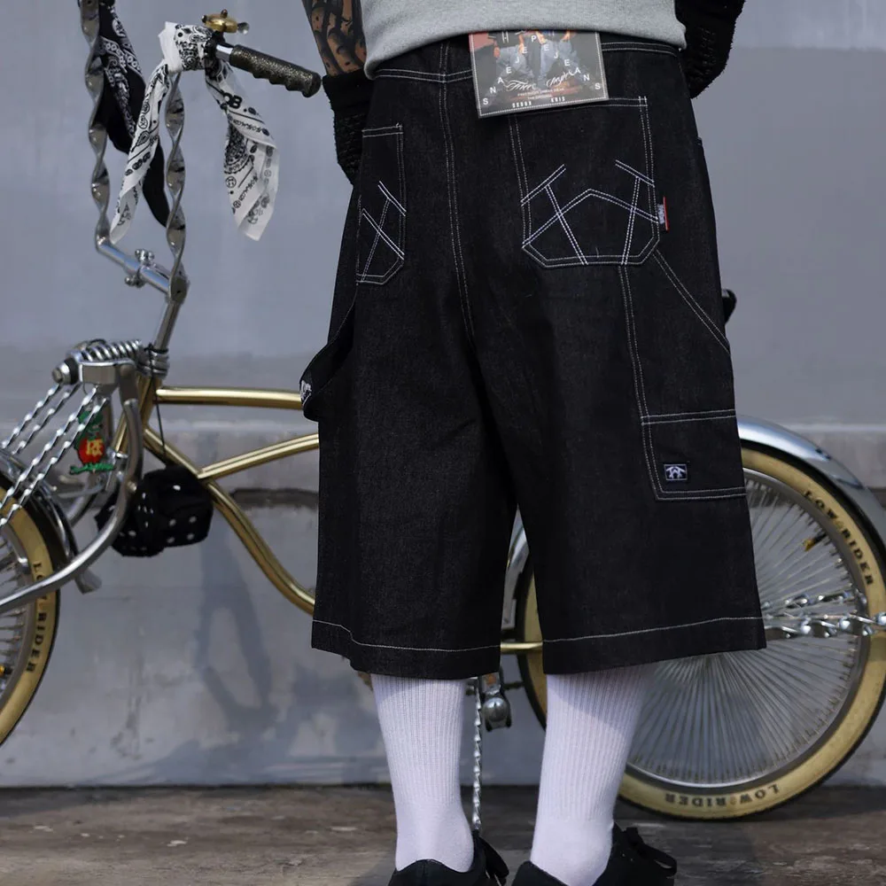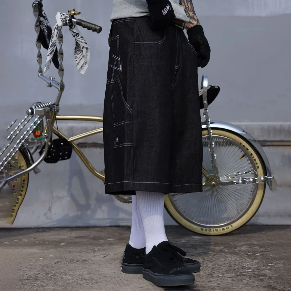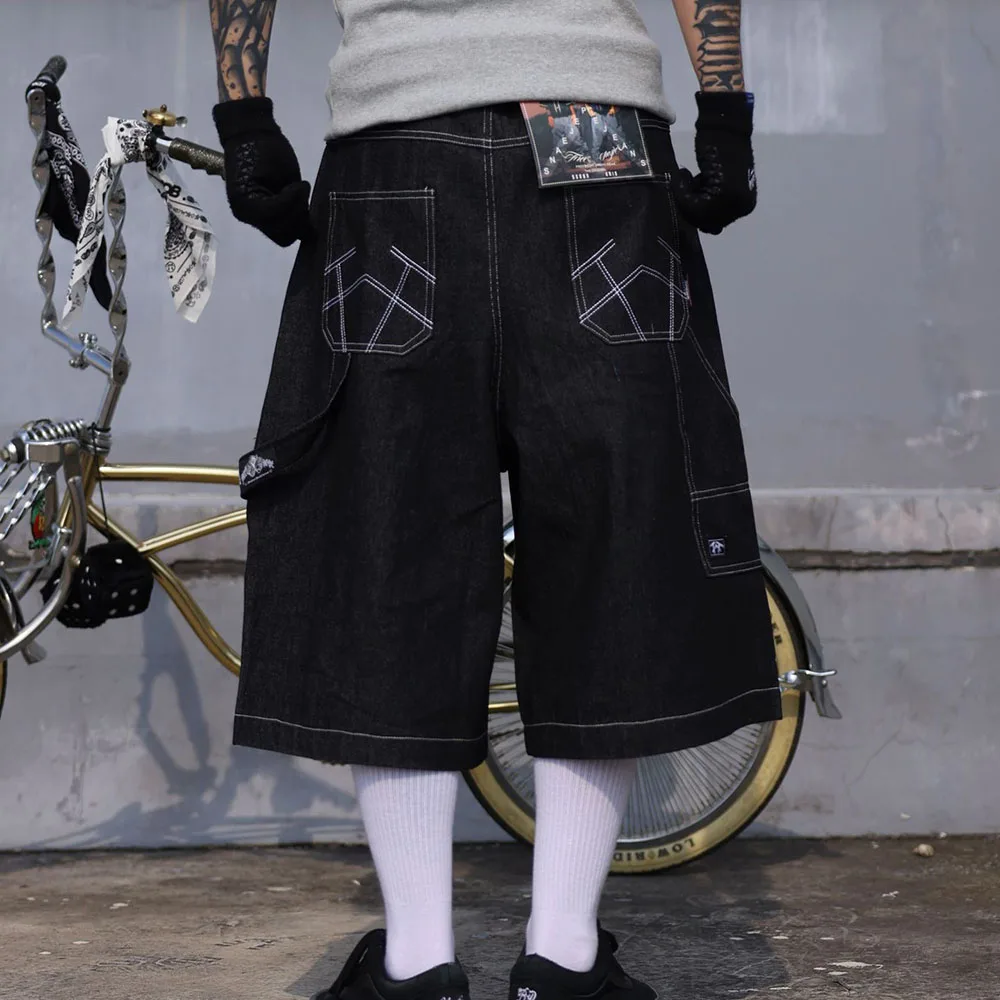 Hearujoy Mens Casual Cropped Pants American Street Retro Hiphop Hiphop Wide Leg Straight Over The Knee Original Color Jeans Summer