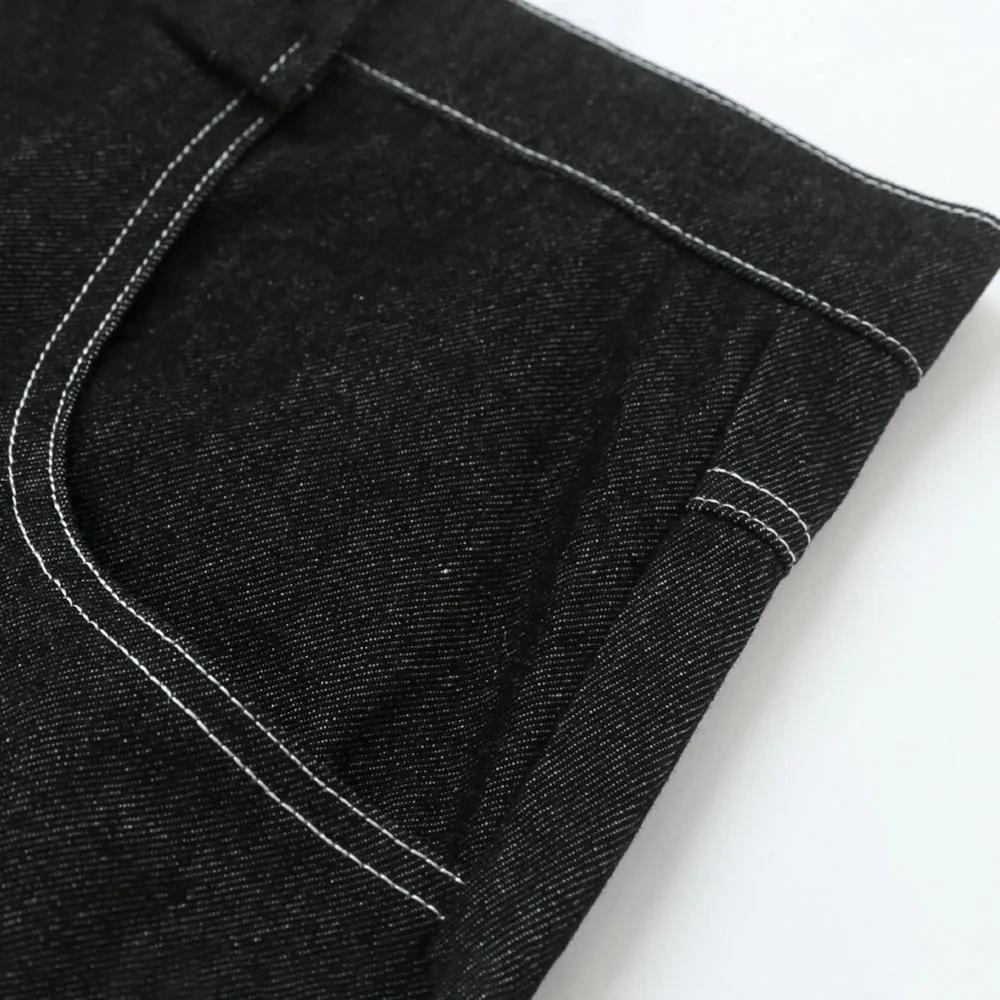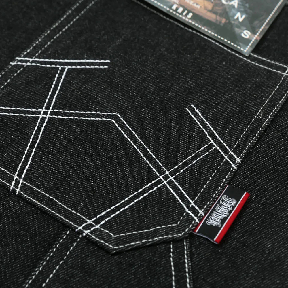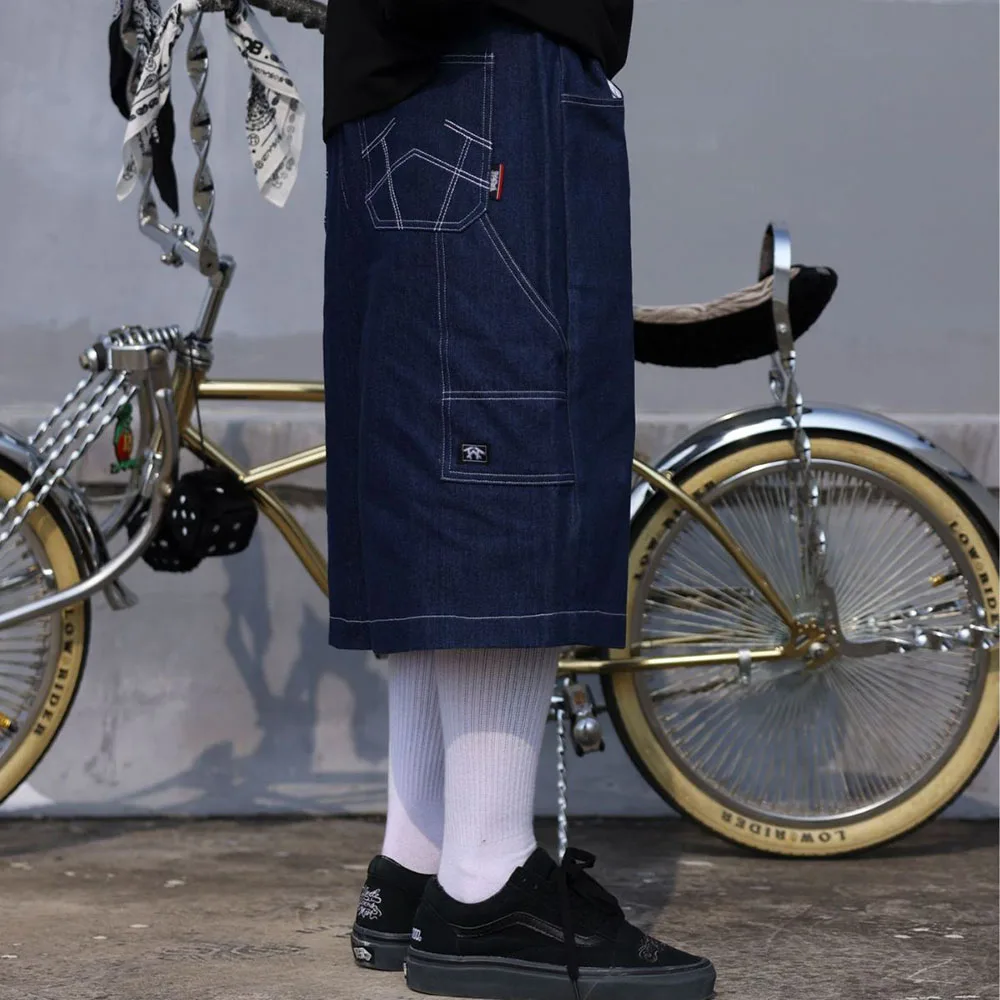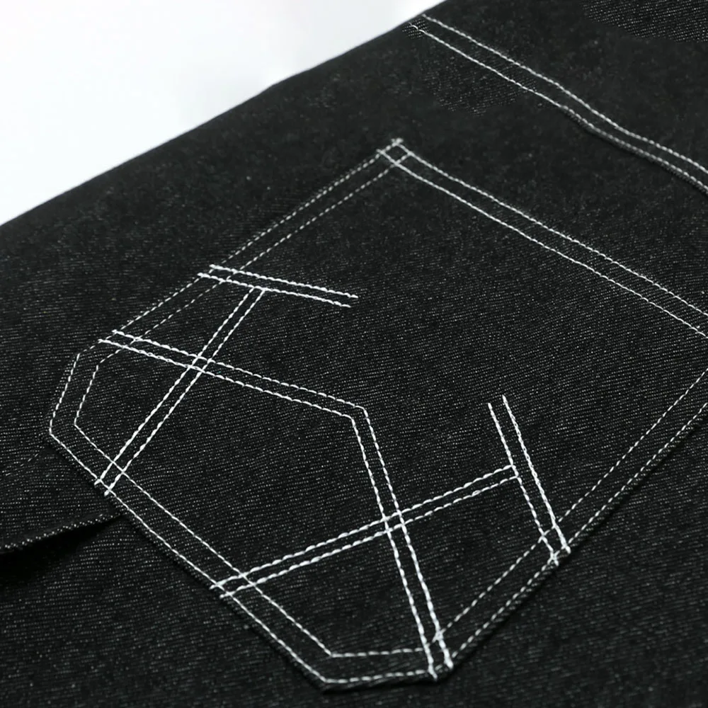 Hearujoy Mens Casual Cropped Pants American Street Retro Hiphop Hiphop Wide Leg Straight Over The Knee Original Color Jeans Summer