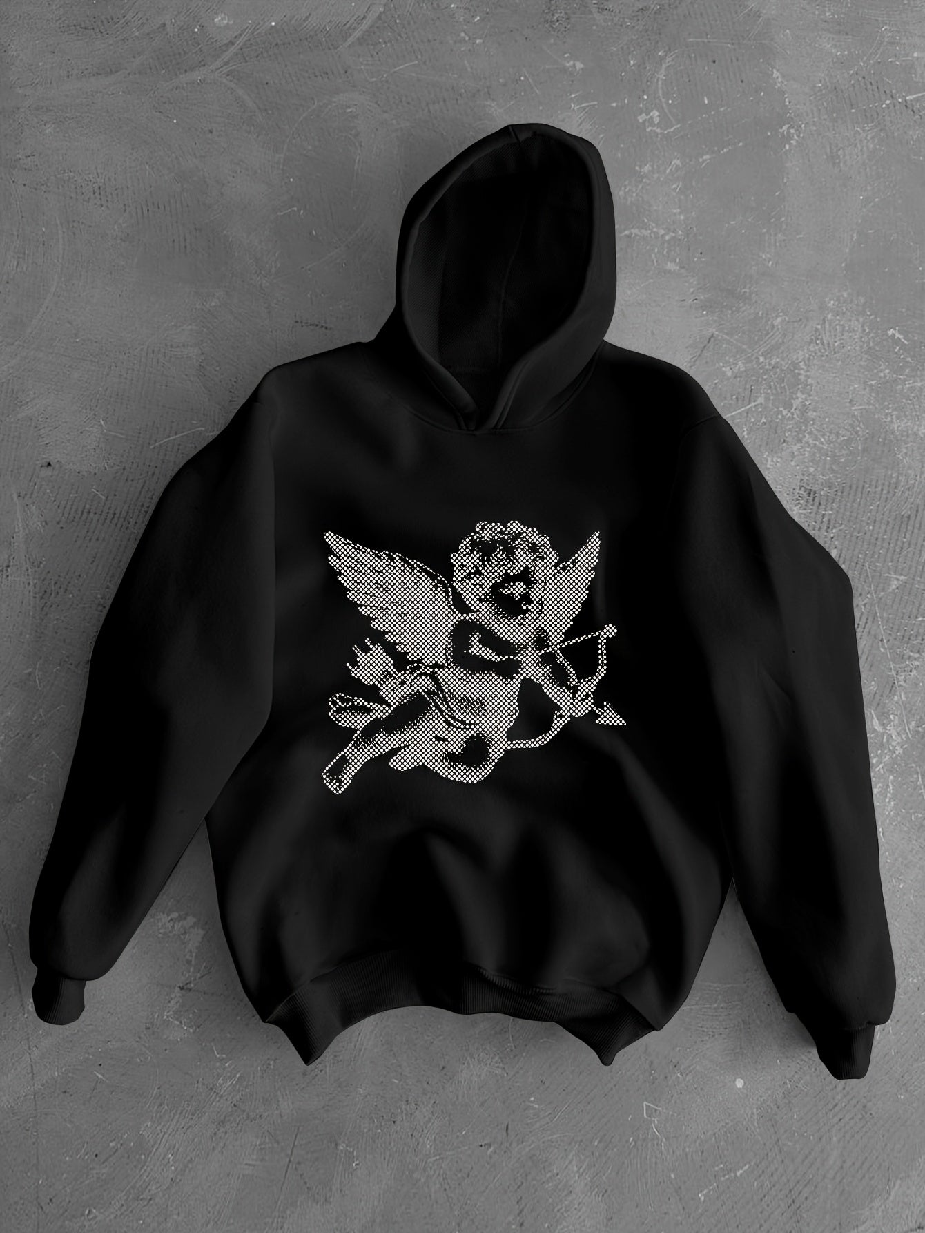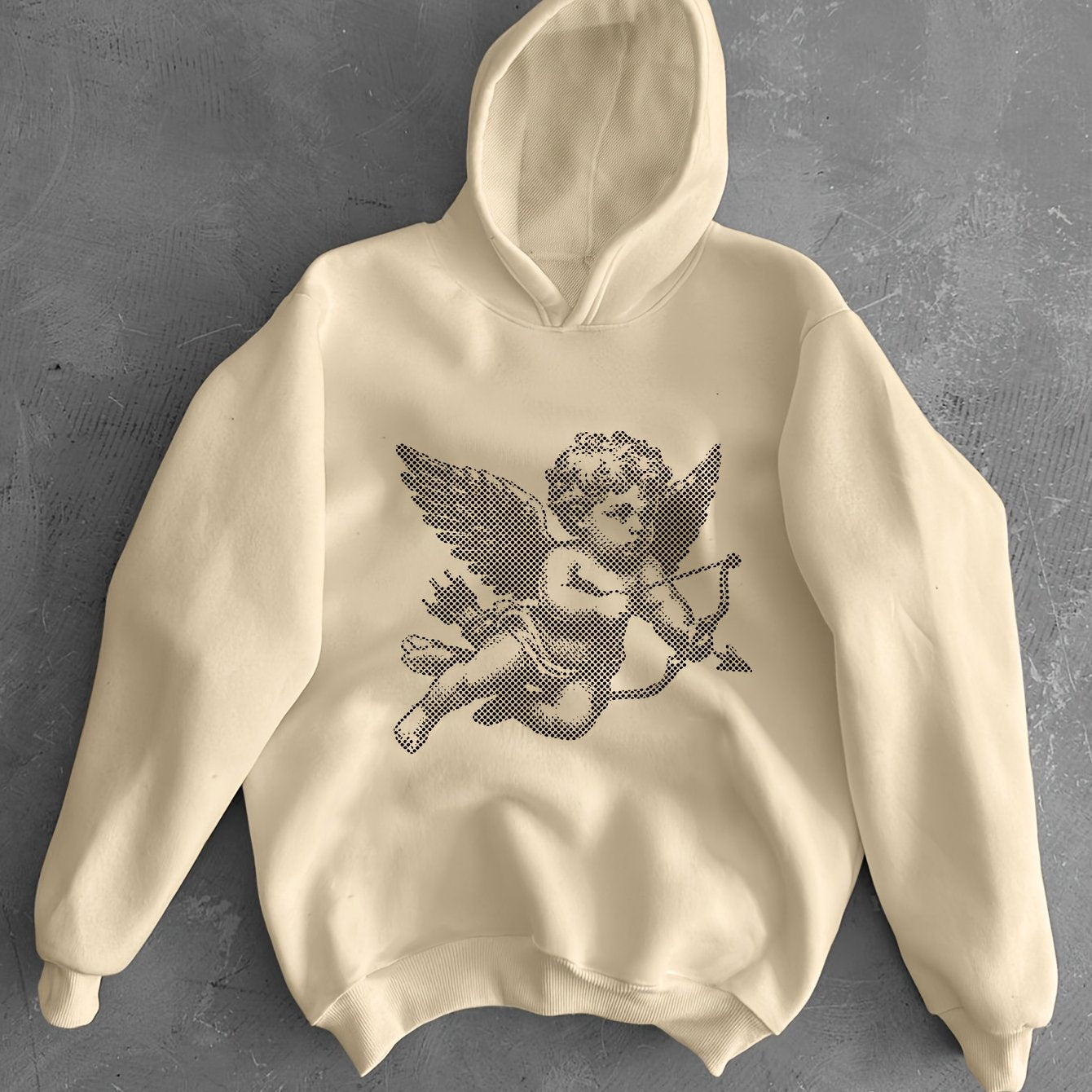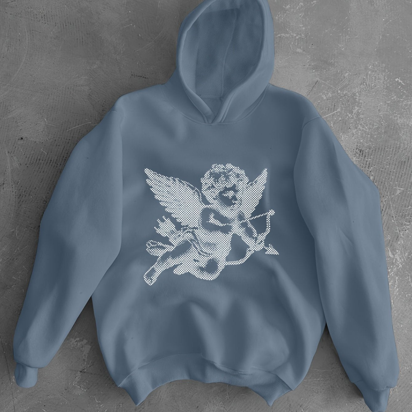 Hearujoy Men's Casual Cupid Angel Print Hoodie - Soft Polyester, Loose Fit, Long Sleeve with Kangaroo Pocket - Ideal for Valentine's Day & Casual Attire, Hoodies for Guys