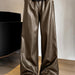 HEARUJOY - Men's Casual Straight Leg Pants with Buttoned Waist - Brown Shiny Fabric, Loose Fit for Streetwear, Hip-Hop Style, and Party Wear