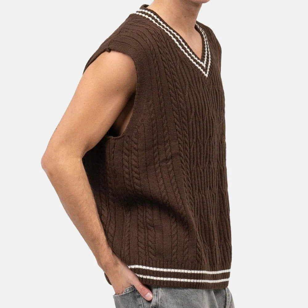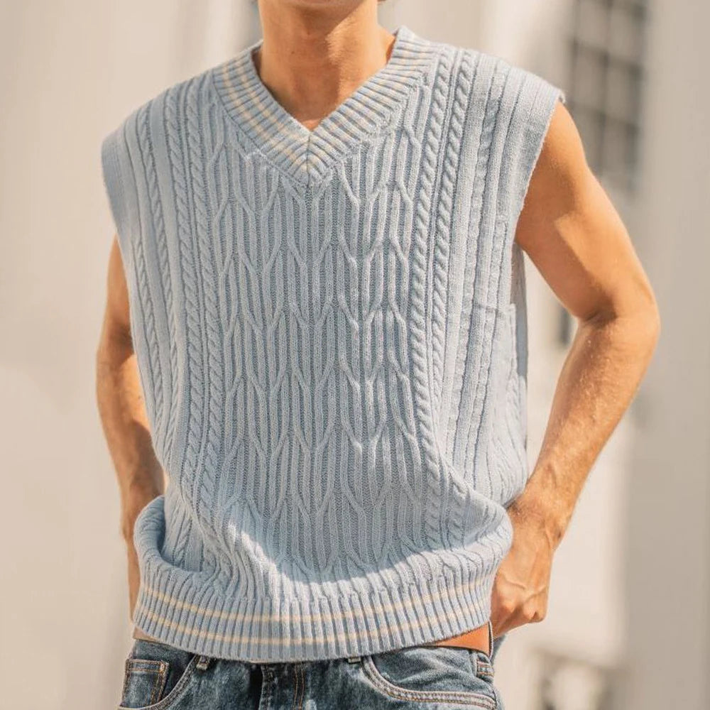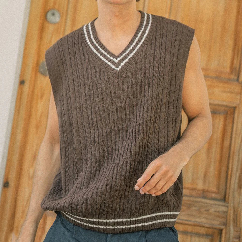 HEARUJOY - Men's Color Matching Knitted Sleeveless Vest Retro Fashion Trend Simple Casual Loose Breathable Summer New Men's Tops