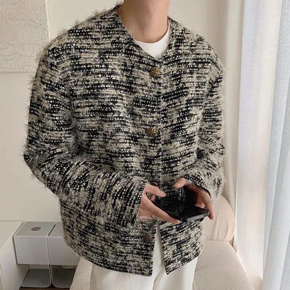 Hearujoy Mens Contrasting Color Tassel Casual Jacket Autumn Winter Genderless Youth Trend French Retro All-Match Loose Jacket Unisex