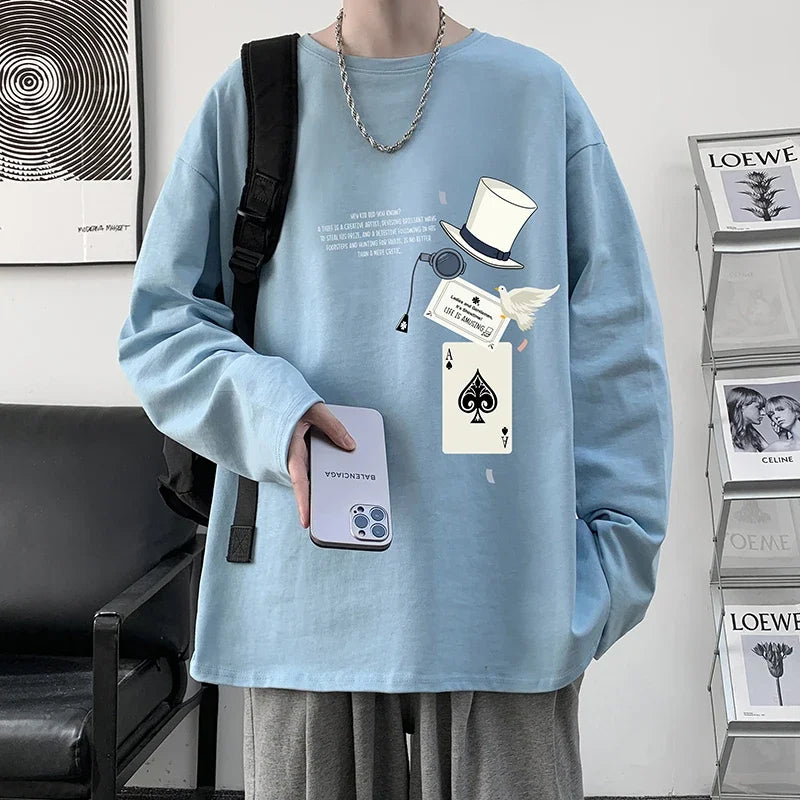 HEARUJOY - Men's Cotton Plain T-shirts Full Sleeves White Fashion Mens Oversized T Shirt 5XL Casual Wear Magic Print Tee Shirts for Men