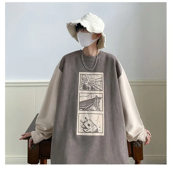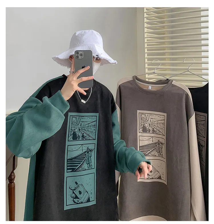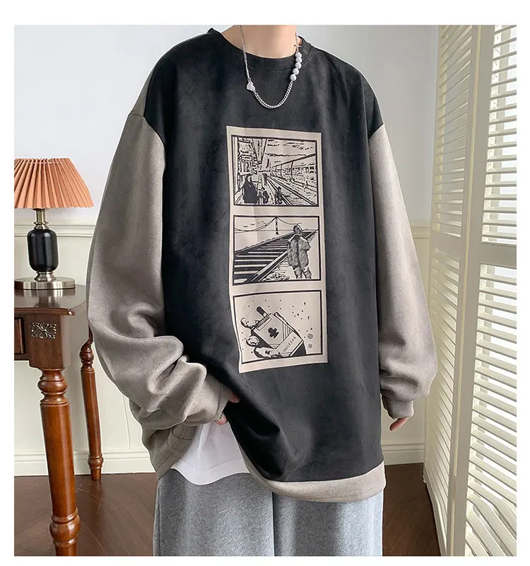 HEARUJOY - Mens Crewneck Sweatshirt Men Graffiti Oversized Japanese Streetwear Hip Hop Black Hoodie Men Sweatshirts Hoodies