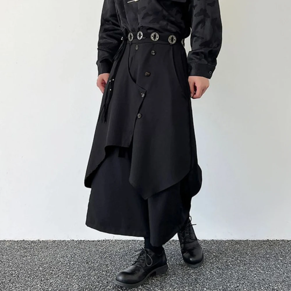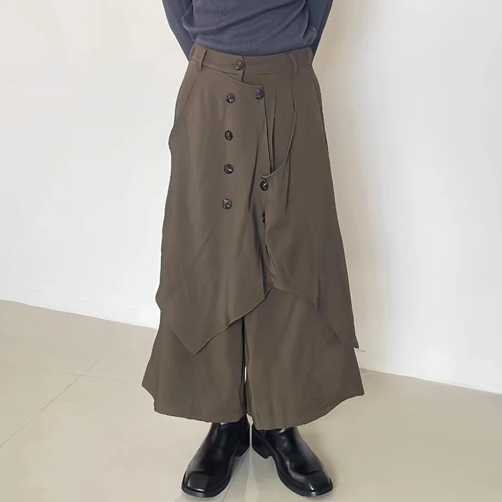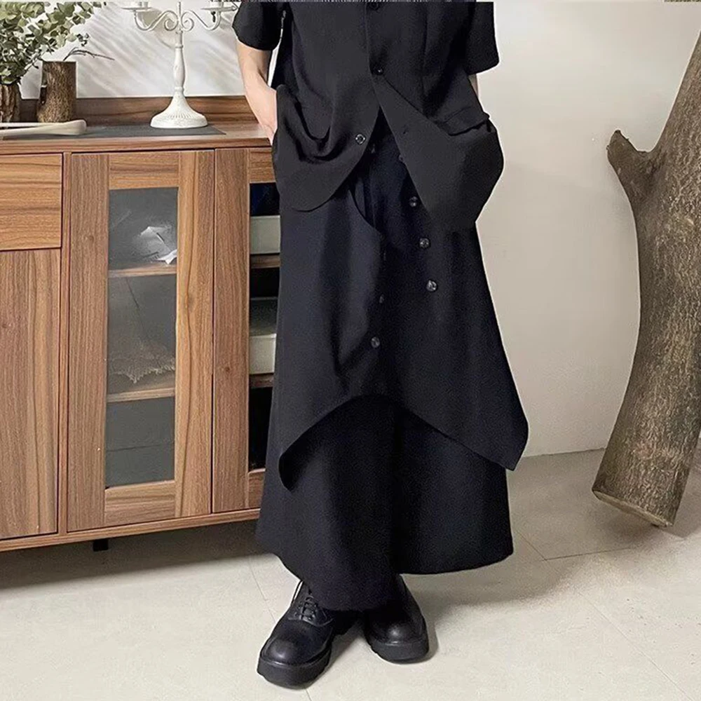Hearujoy Mens Dark Style Double Layer Irregular Skirts 2024 New Genderless Fashion Trend Retro Solid Color Loose Wide Leg Pants Unisex