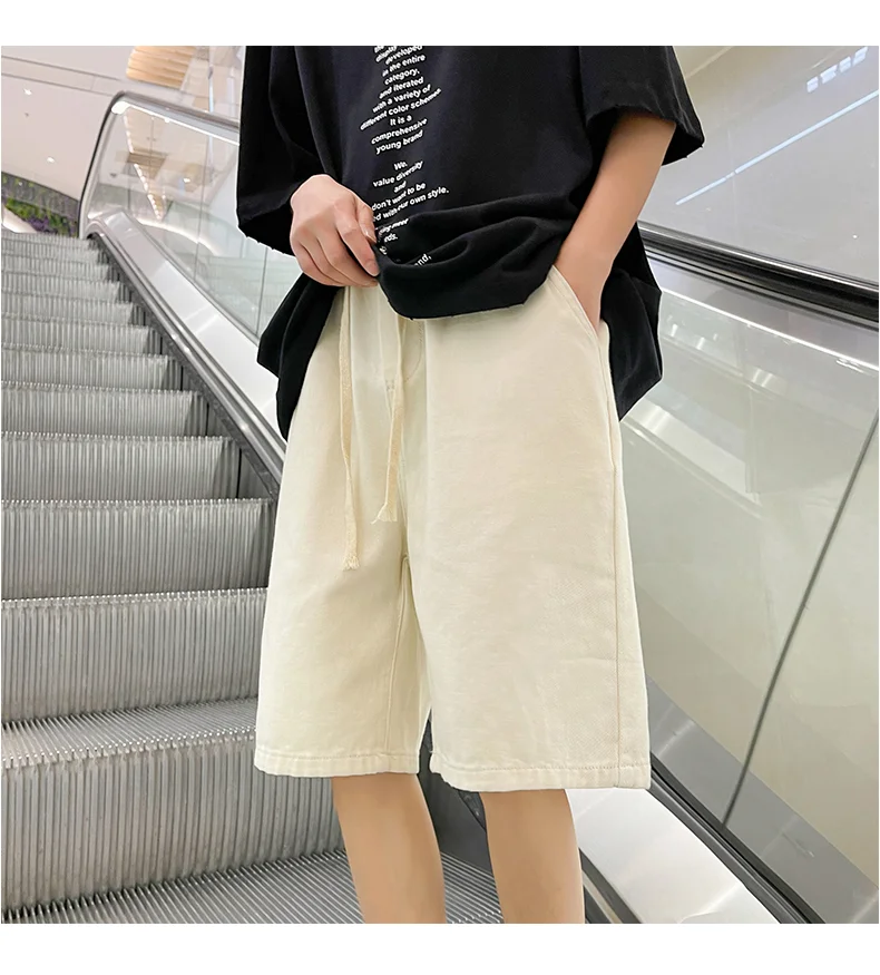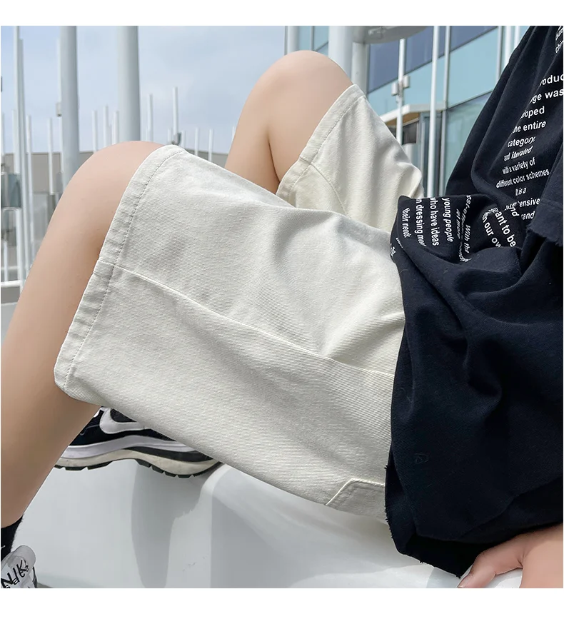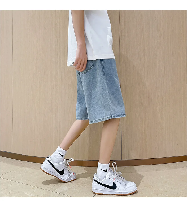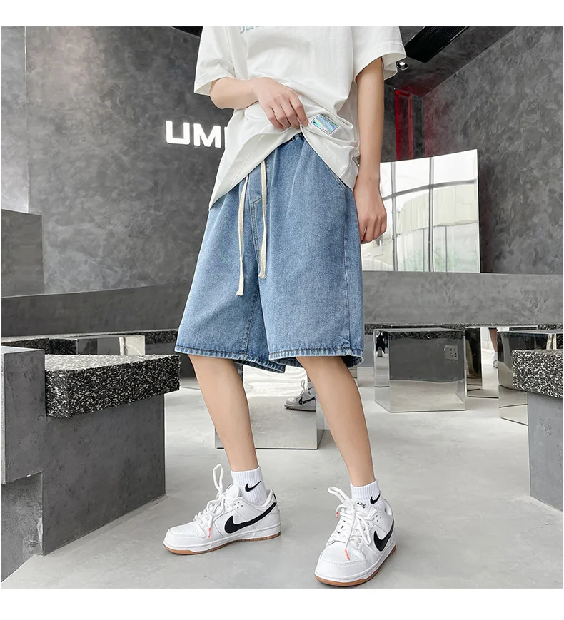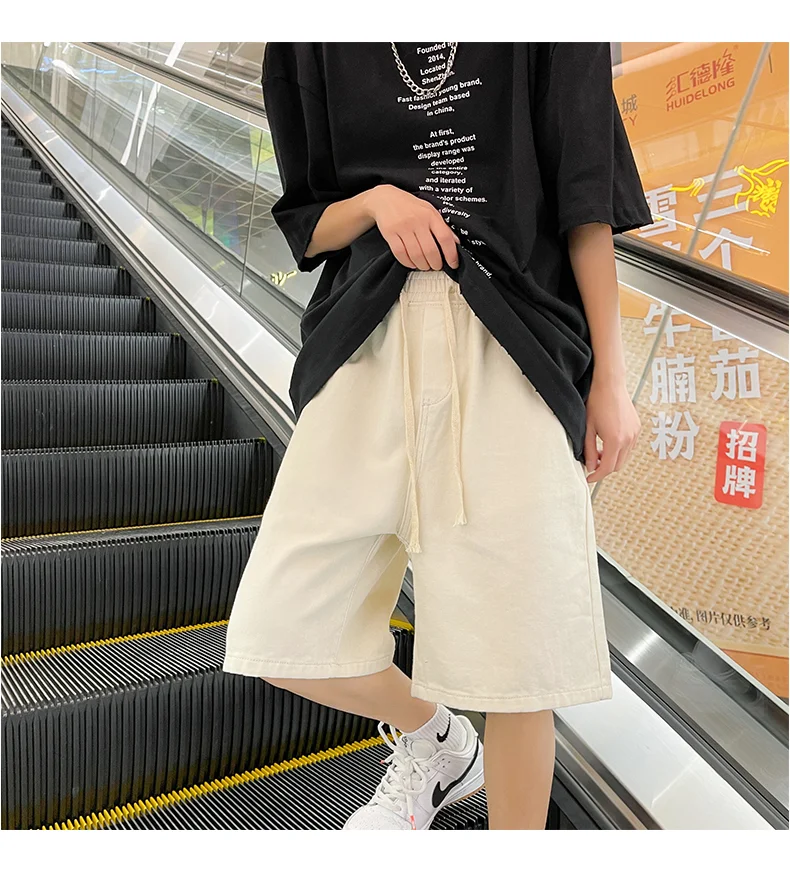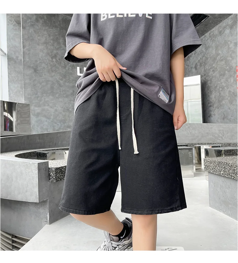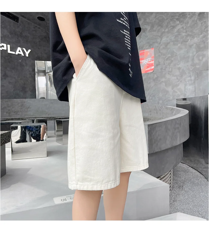 Hearujoy Men's Denim Shorts Summer New Korean Street Loose Straight Leg Wide Leg Shorts Retro Baggy Casual Shorts Black White Blue