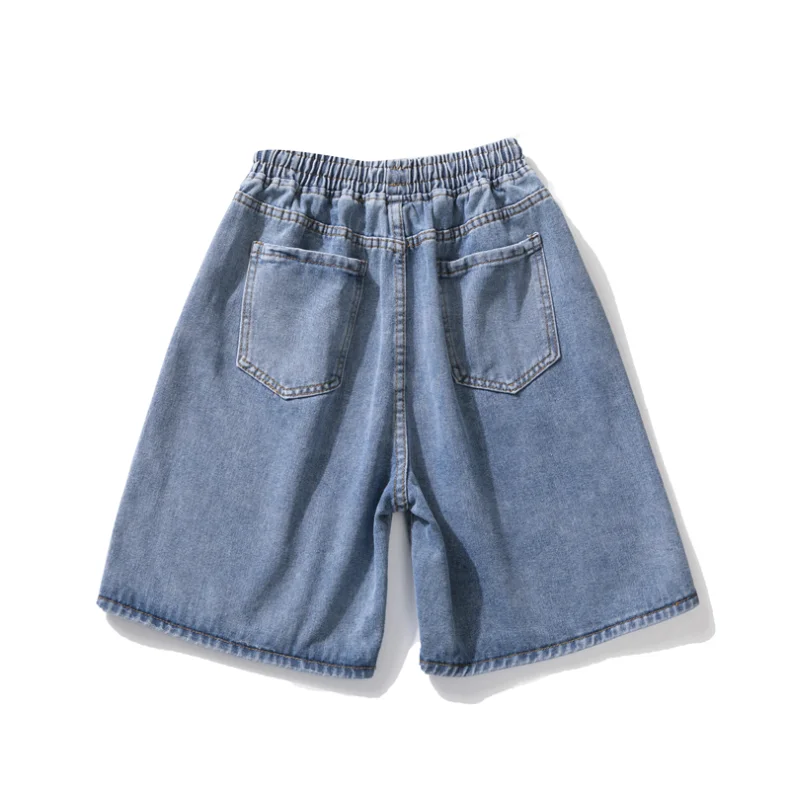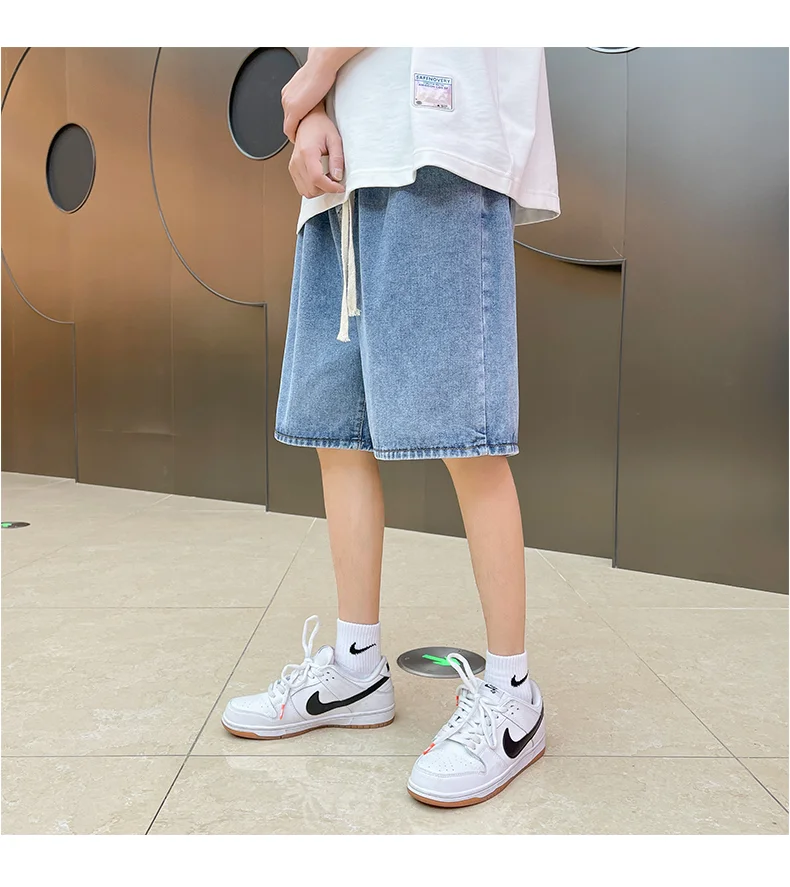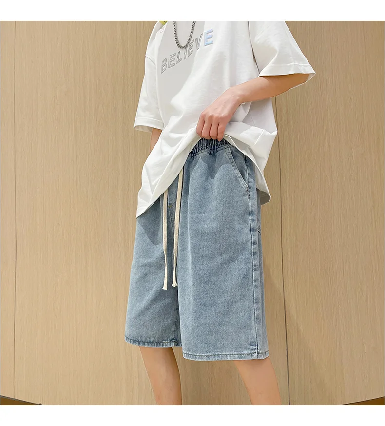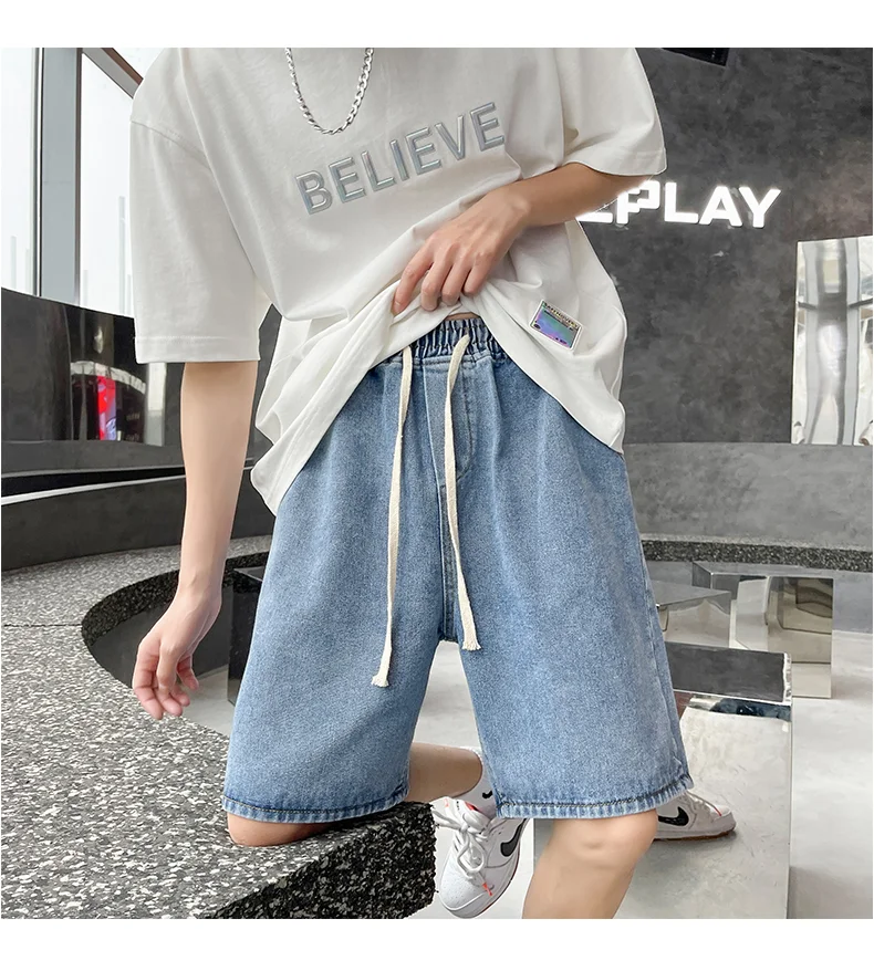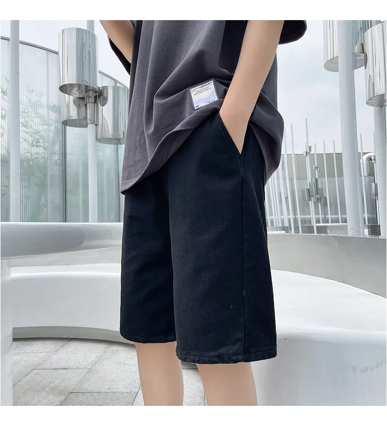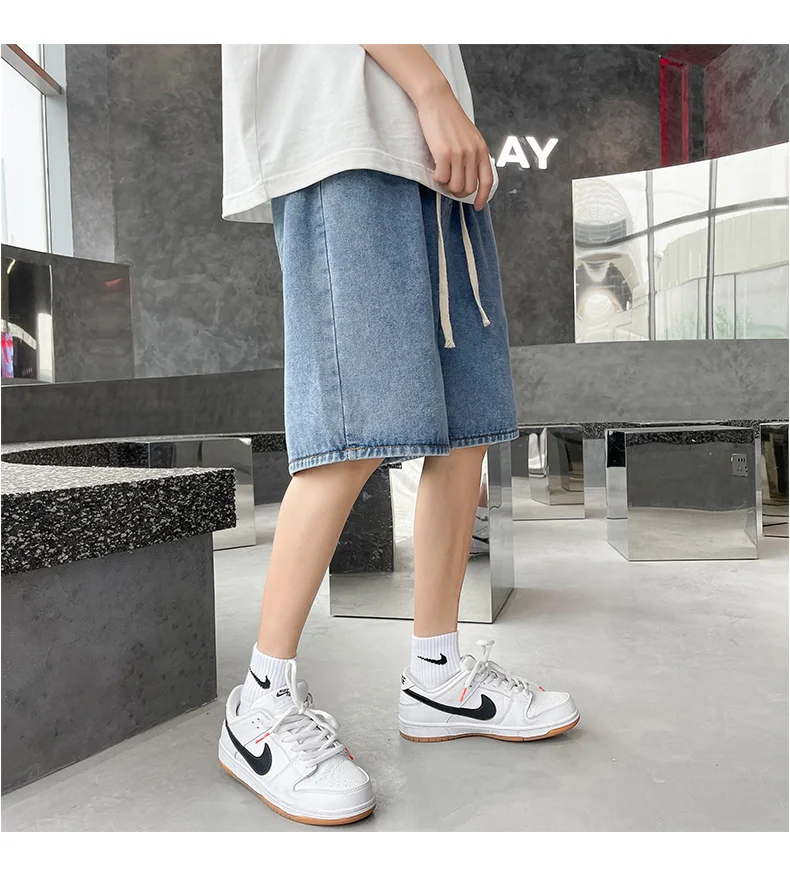 Hearujoy Men's Denim Shorts Summer New Korean Street Loose Straight Leg Wide Leg Shorts Retro Baggy Casual Shorts Black White Blue