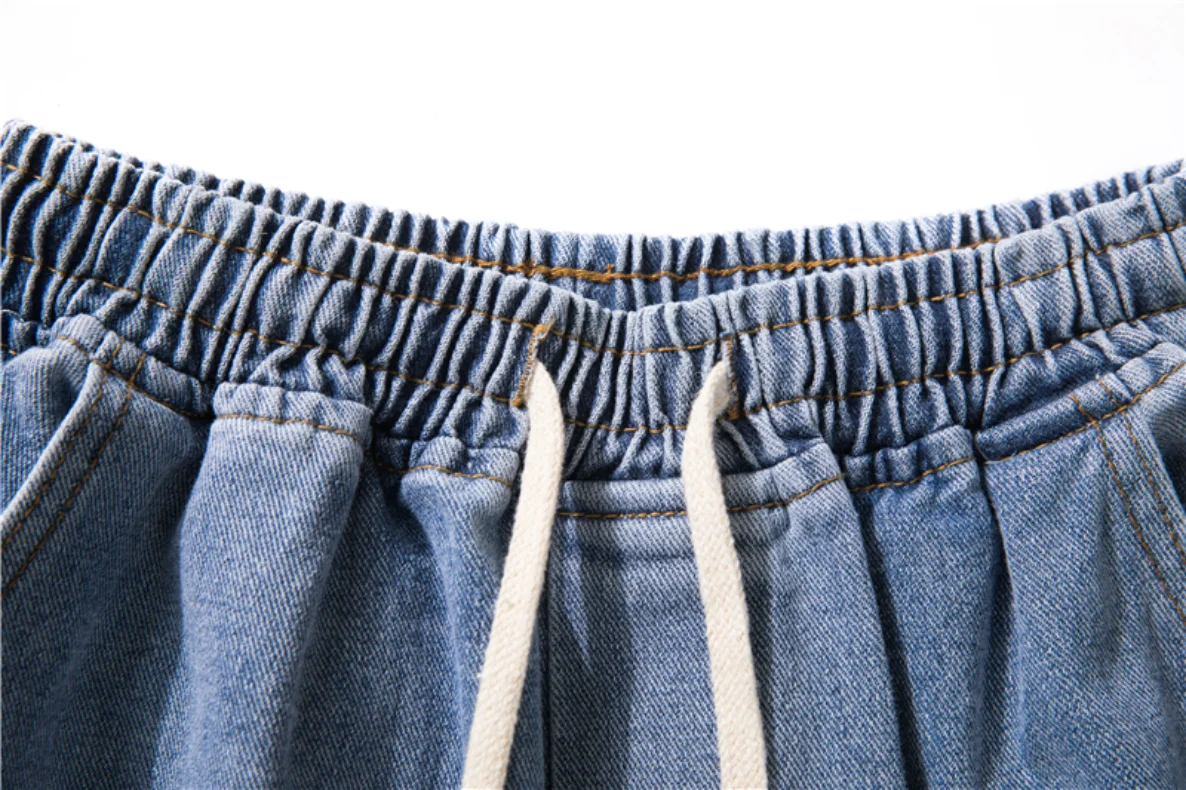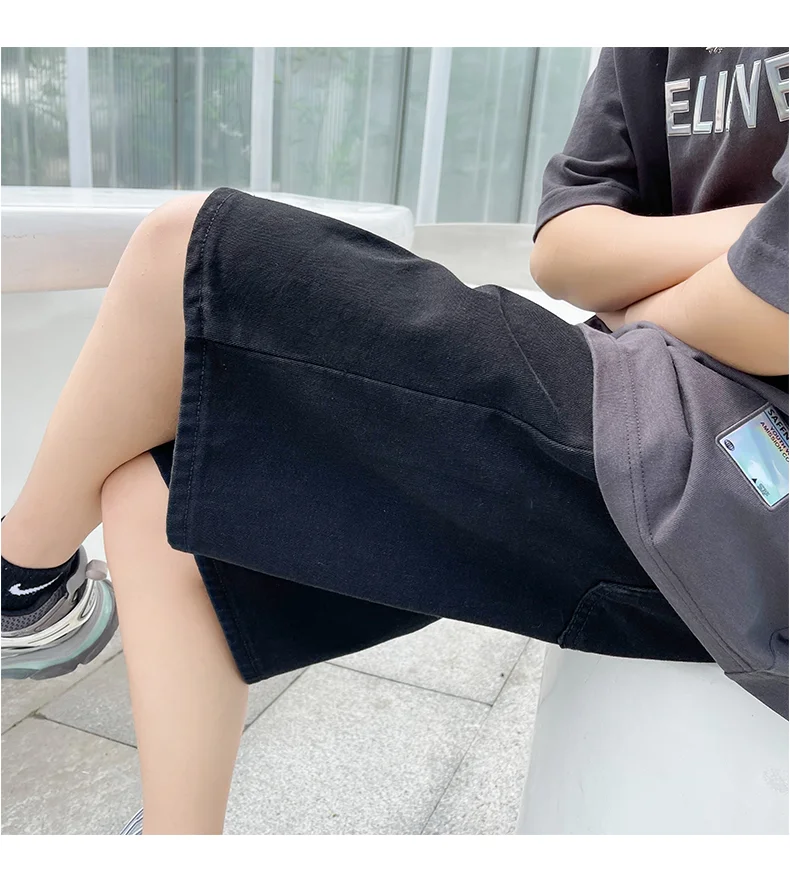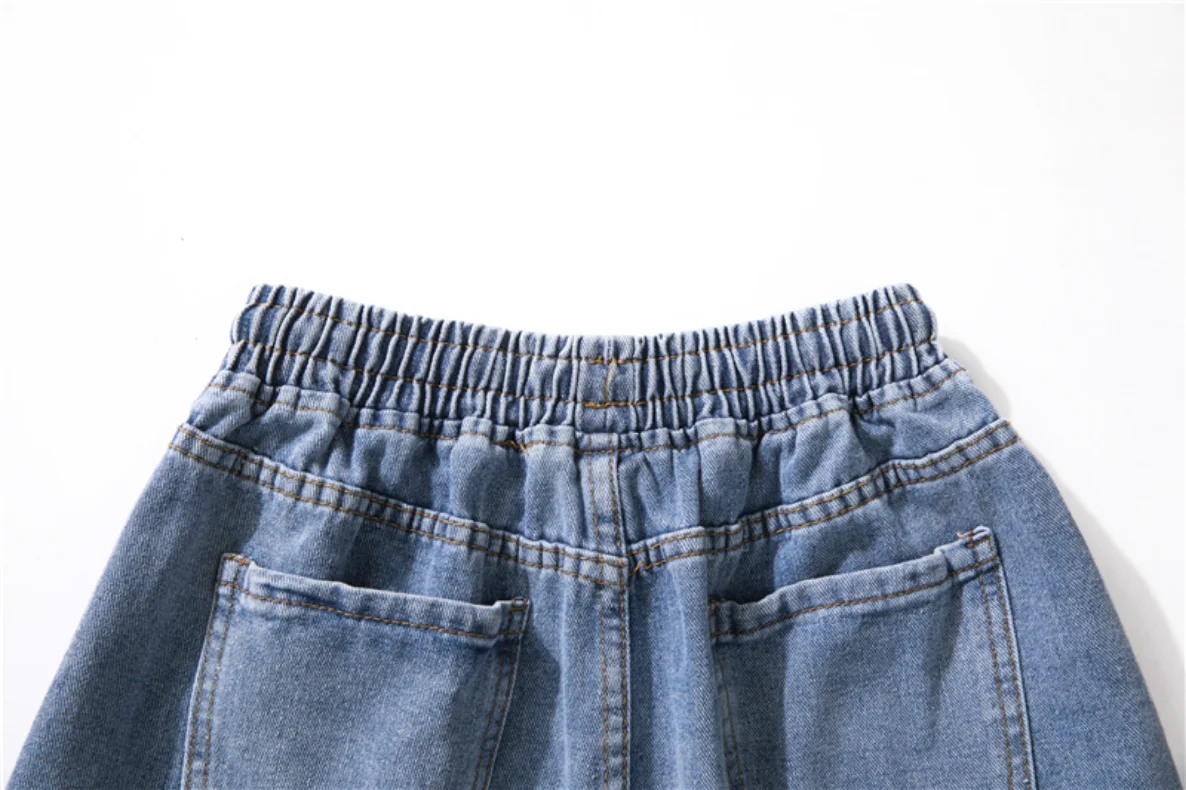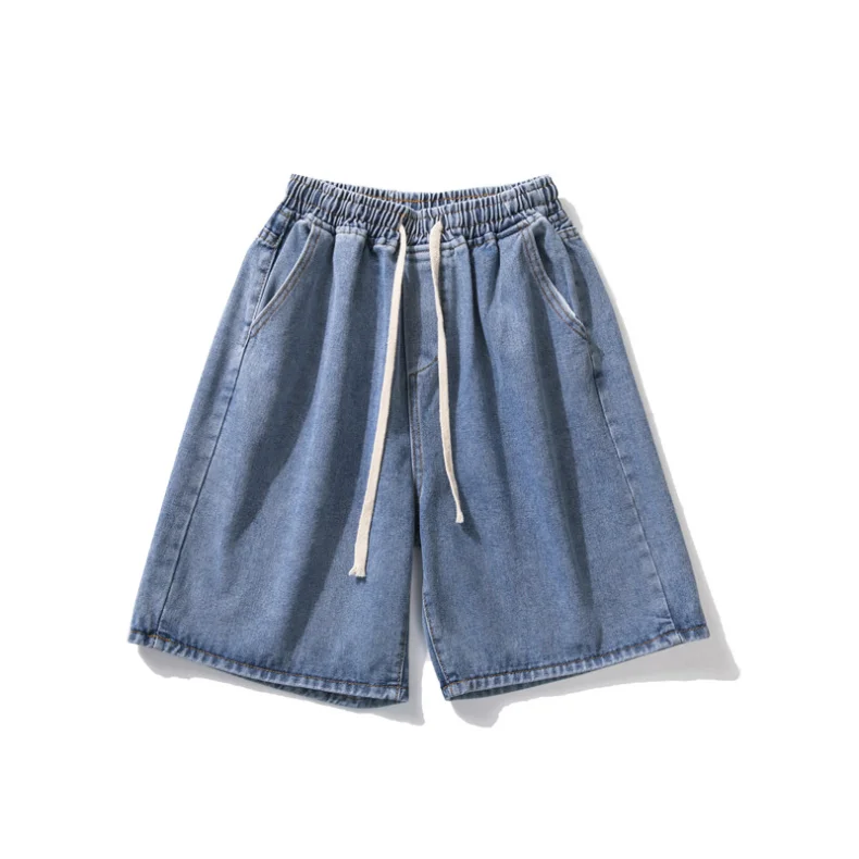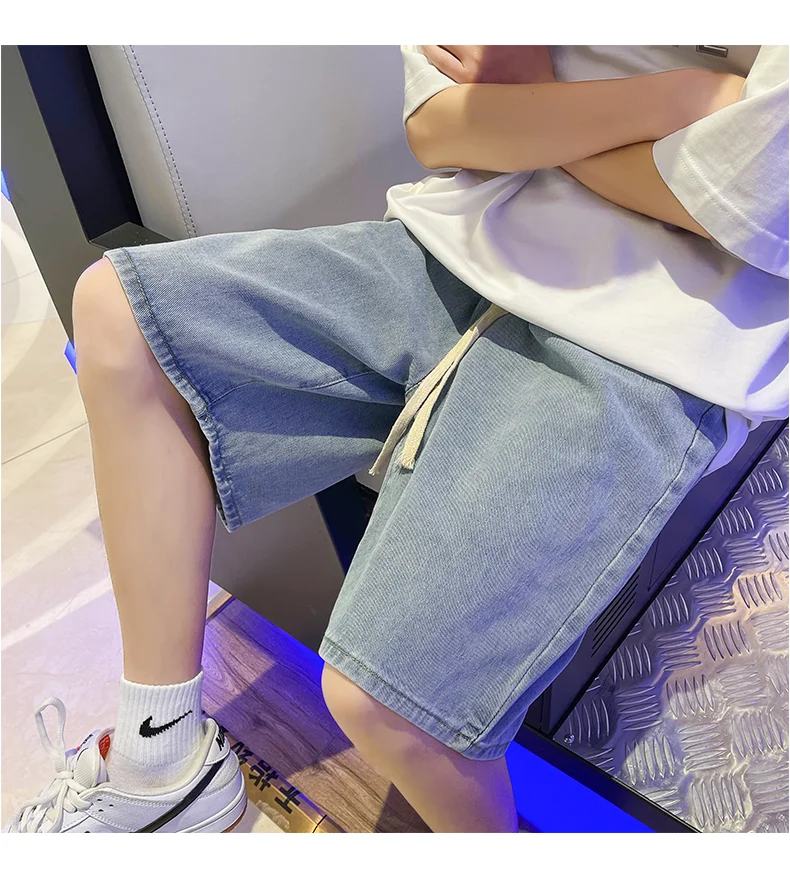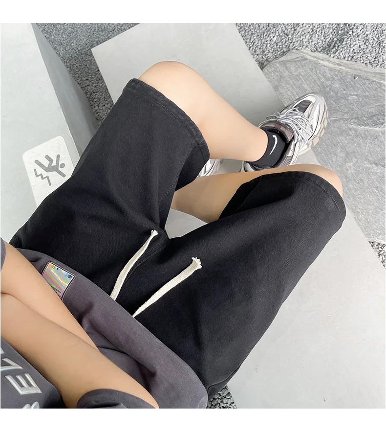 Hearujoy Men's Denim Shorts Summer New Korean Street Loose Straight Leg Wide Leg Shorts Retro Baggy Casual Shorts Black White Blue