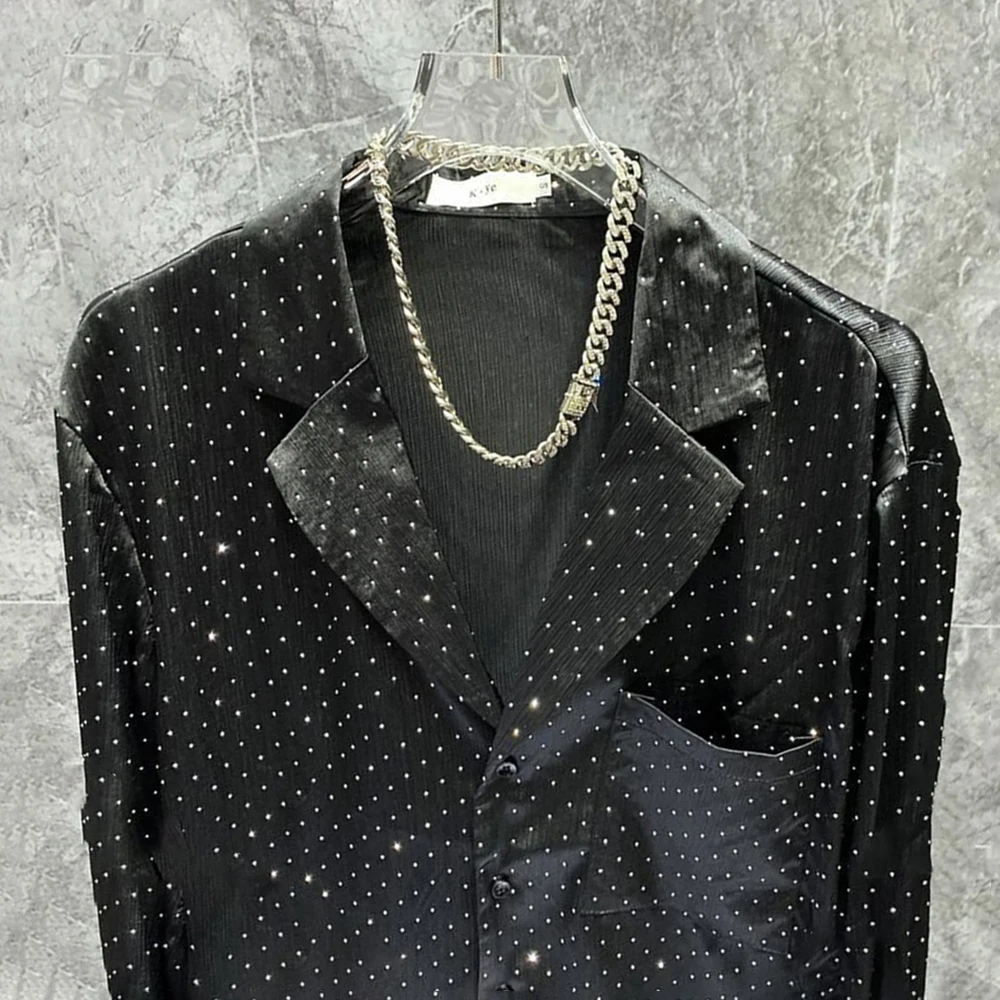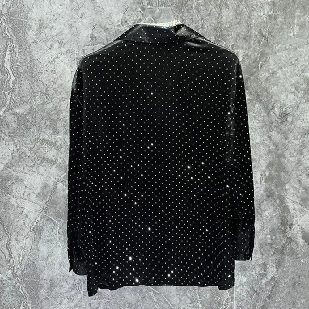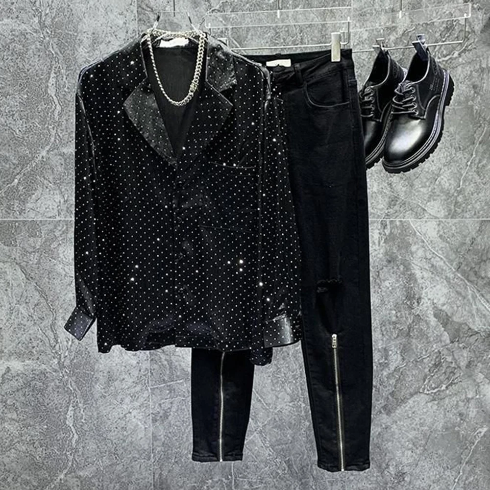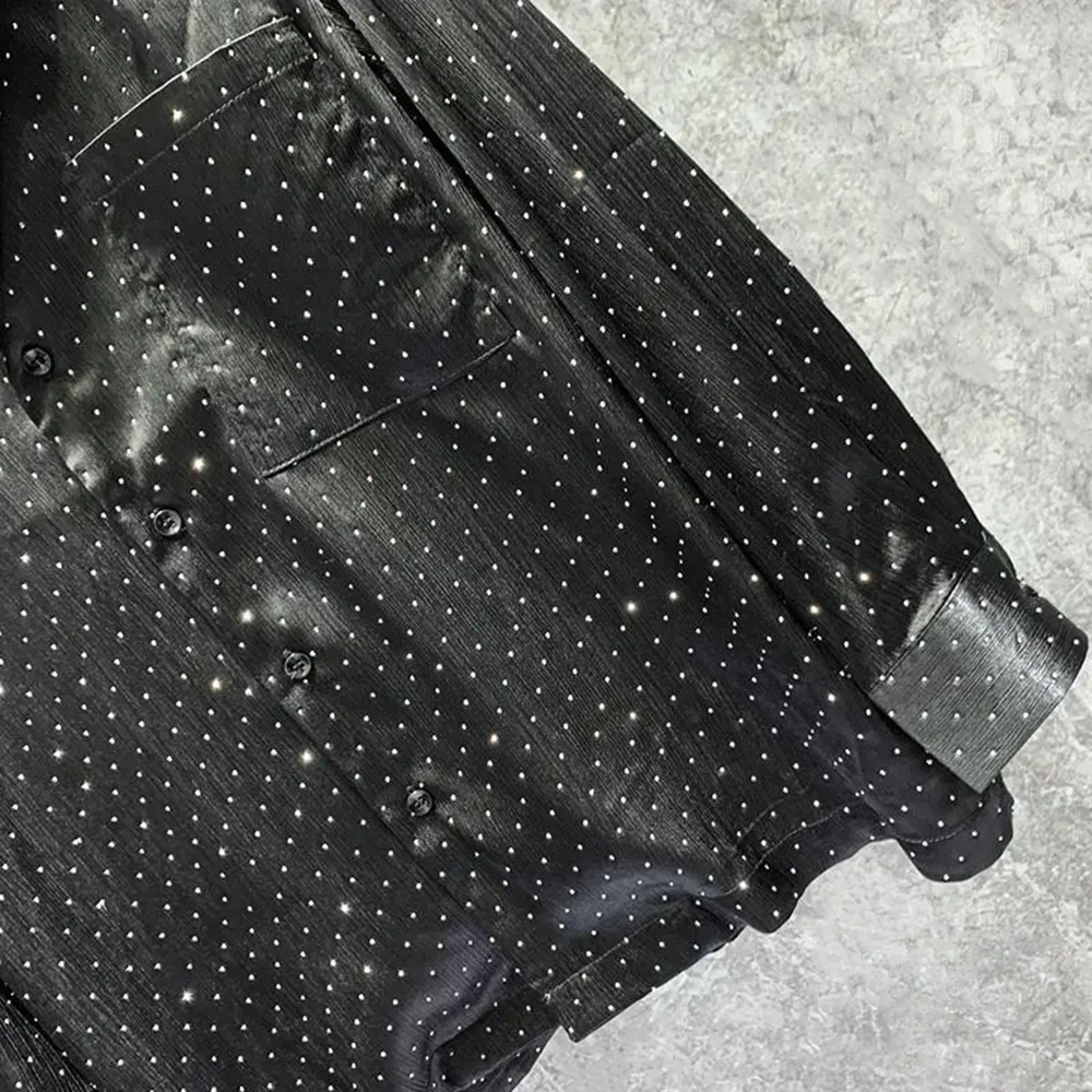 Hearujoy Mens Diamond-Encrusted Long-Sleeve Casual Shirt Autumn Genderless Fashion Youth Nightclub Loose Niche Temperament Shirt Unisex