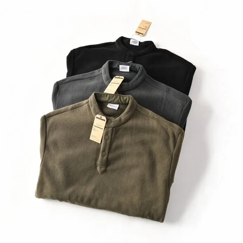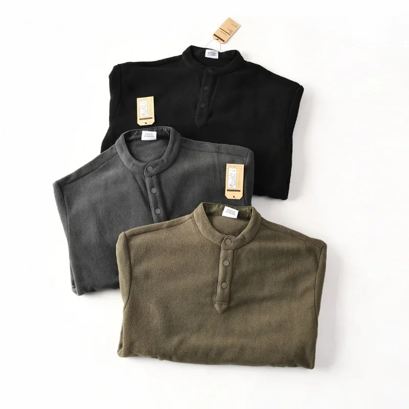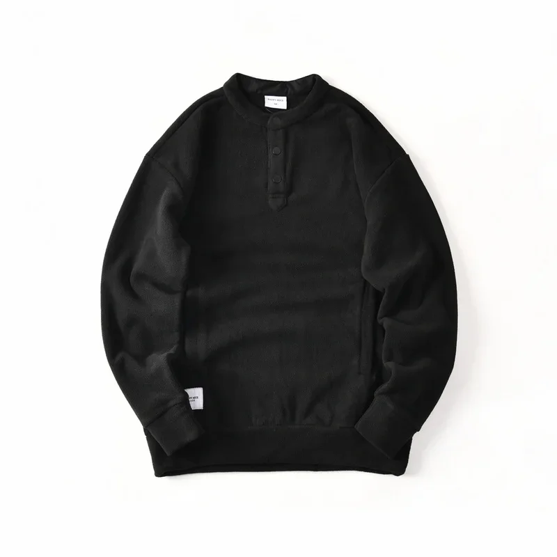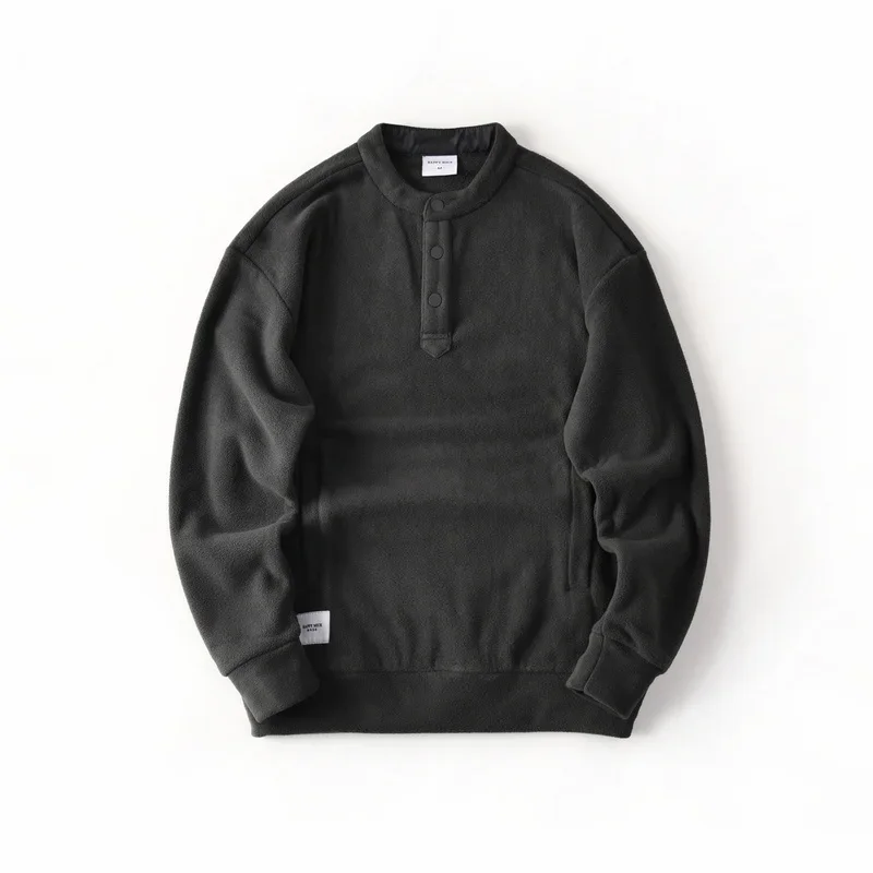 HEARUJOY - Men's Double-Sided Fleece Relaxed Fit Henley Neck Pullover - Warm Casual Sweatshirt for Autumn/Winter