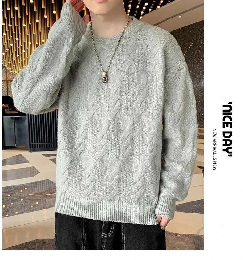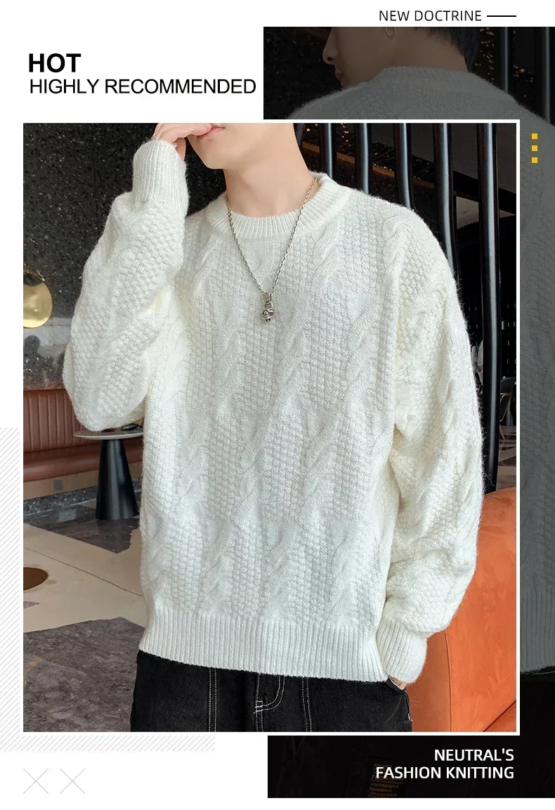 HEARUJOY - Men's Fashion Inside Crew-neck Knit Hoodie Version Loose Breathable Autumn and Winter Sweater Men Casual