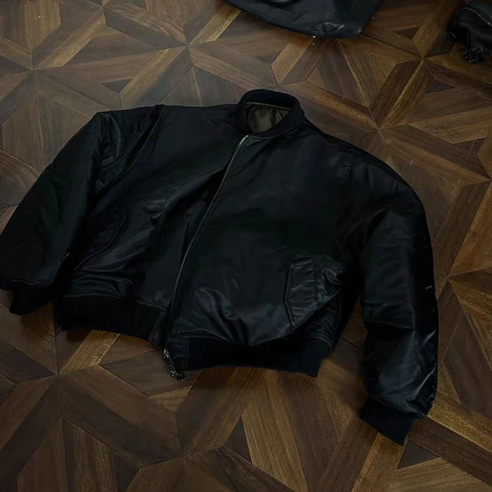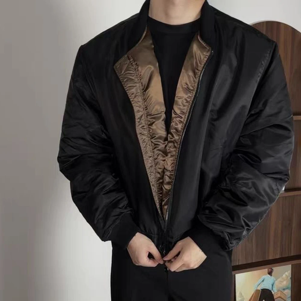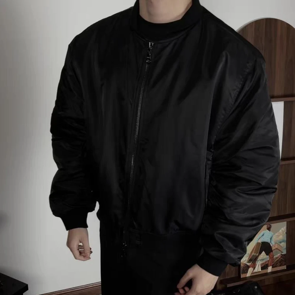 Hearujoy Mens Fashion Silhouette Retro Pilot Jacket Autumn And Winter New Street Trend Casual Lapel Loose Solid Color Cotton Coat Men