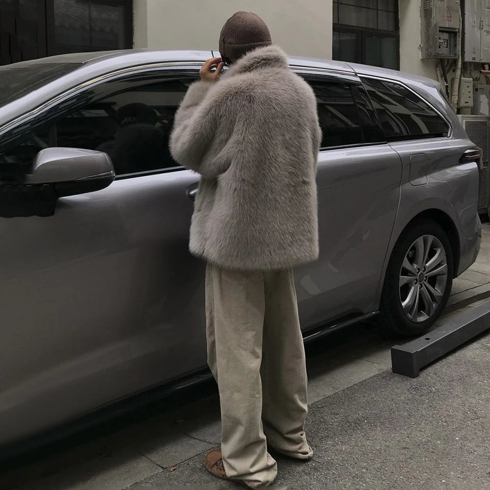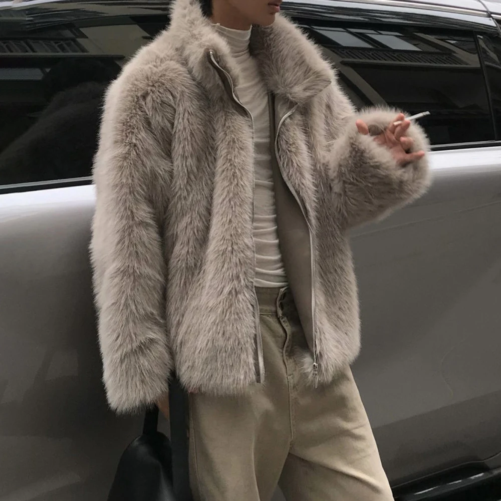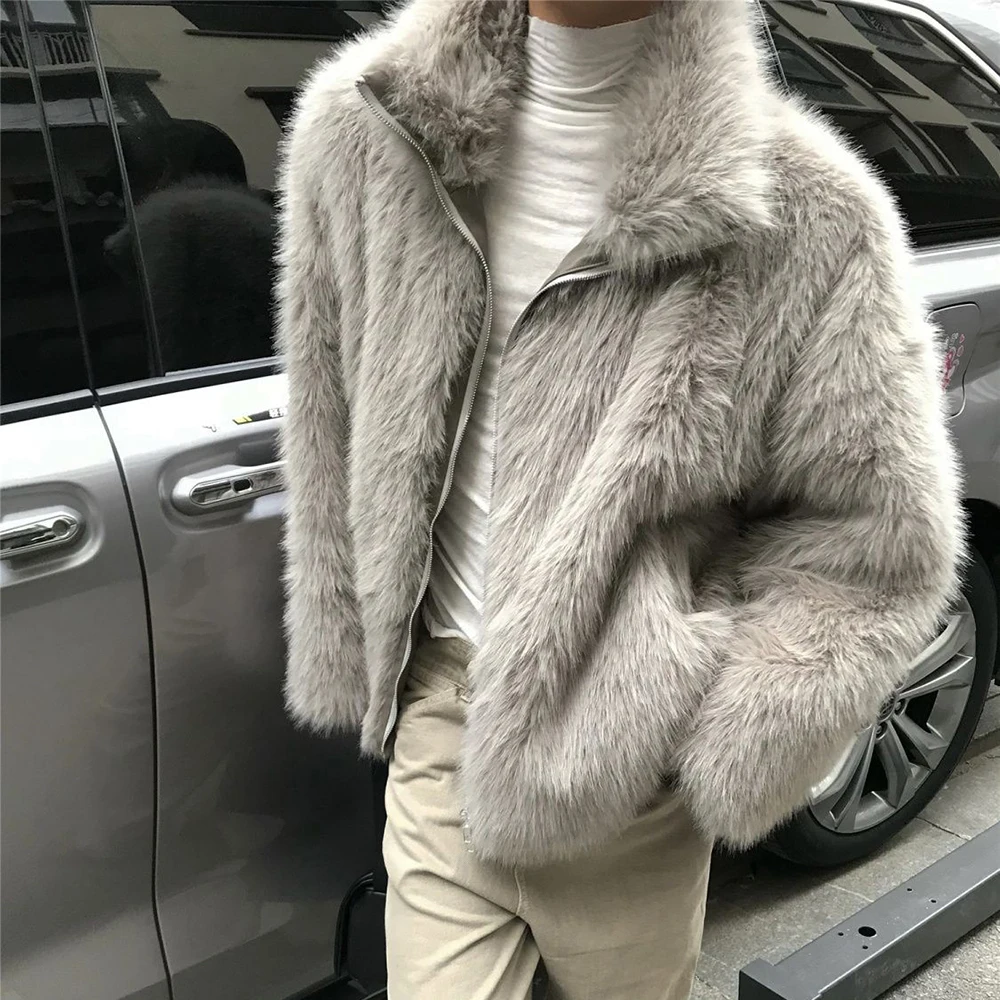 HEARUJOY - Mens Fashion Warm Clothing Autumn And Winter Korean Plush New Fur Coat Imitation Leather Thick Warm Stand Collar Trendy Coat Men