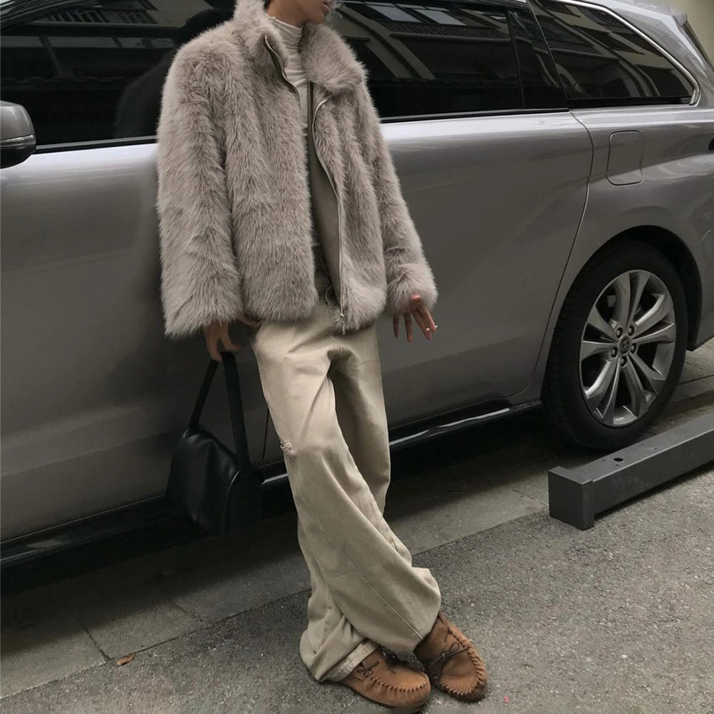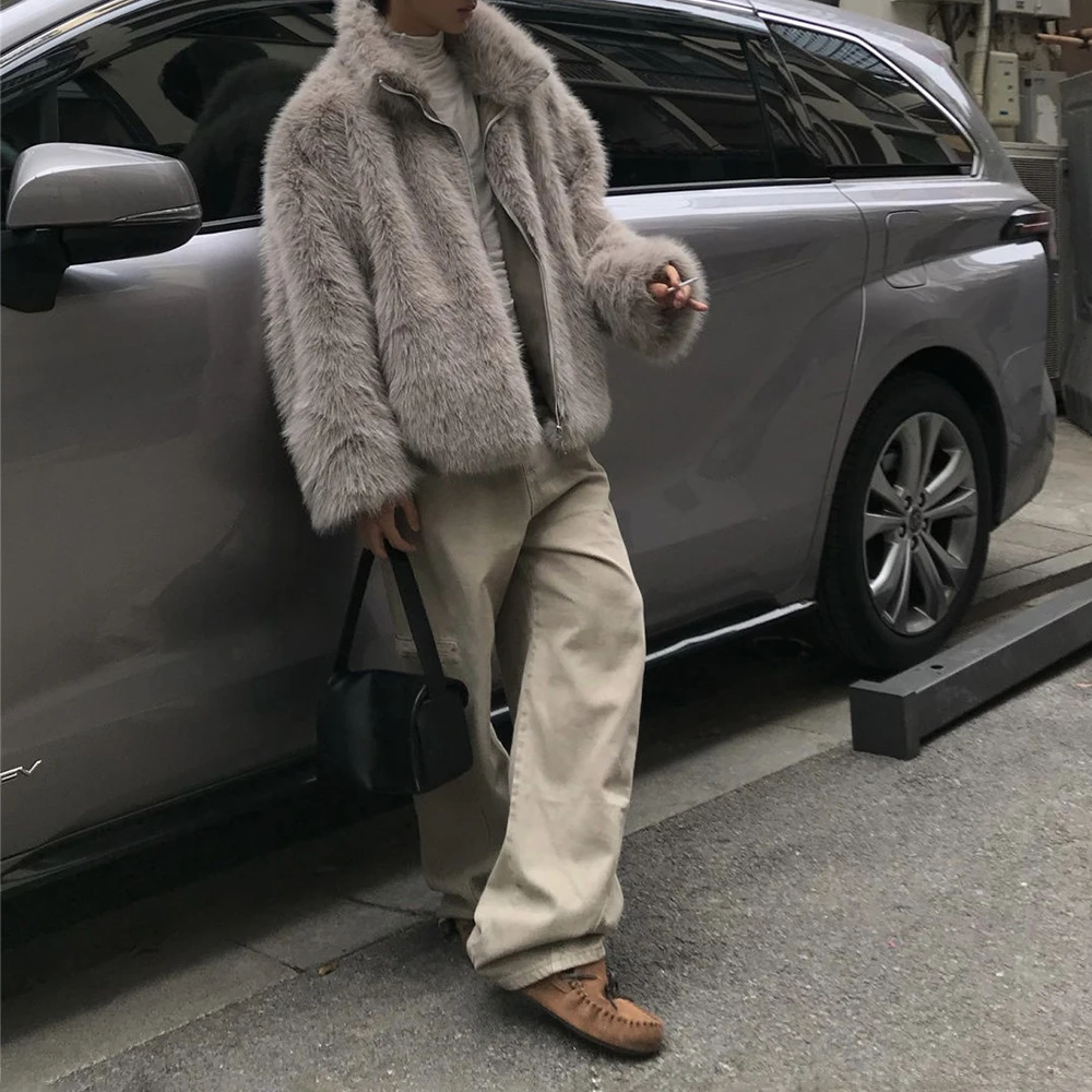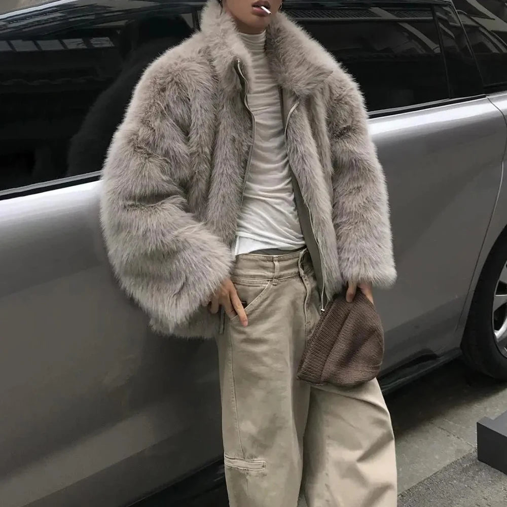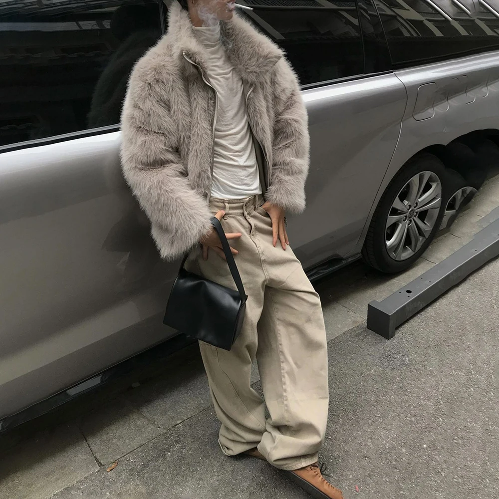 HEARUJOY - Mens Fashion Warm Clothing Autumn And Winter Korean Plush New Fur Coat Imitation Leather Thick Warm Stand Collar Trendy Coat Men