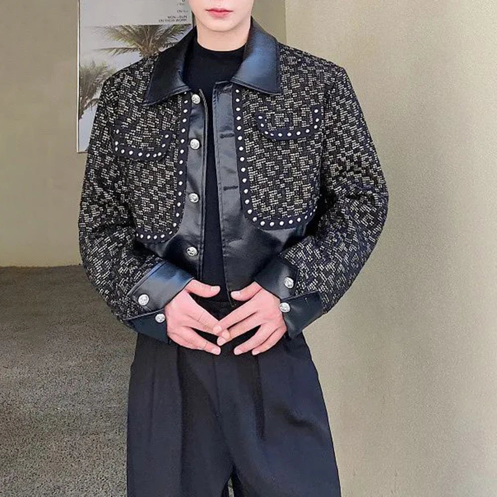 Hearujoy Mens French Elegant Retro Splicing Metal Decorative PU Leather Jacket Genderless Trend Fashion Street Short Jacket Unisex