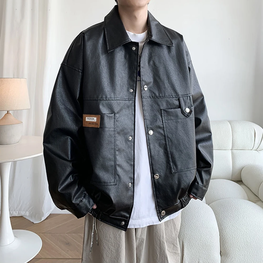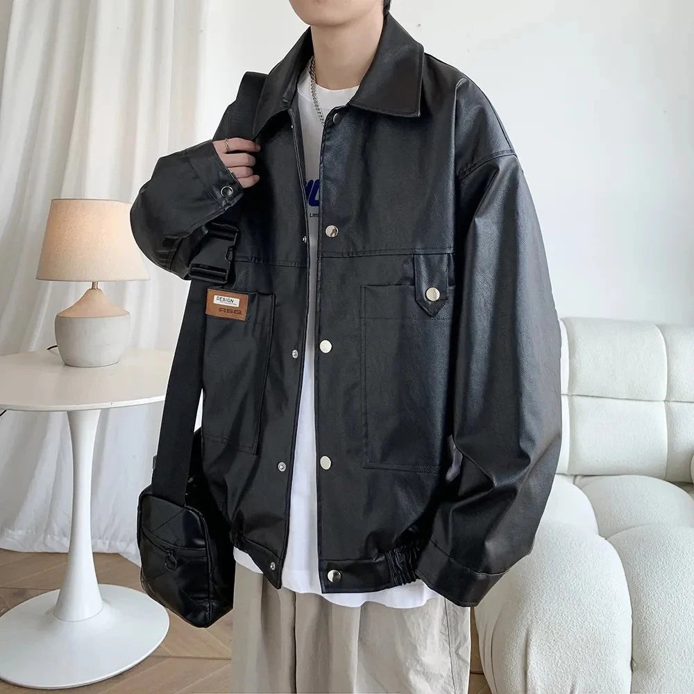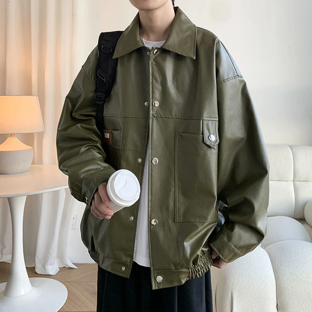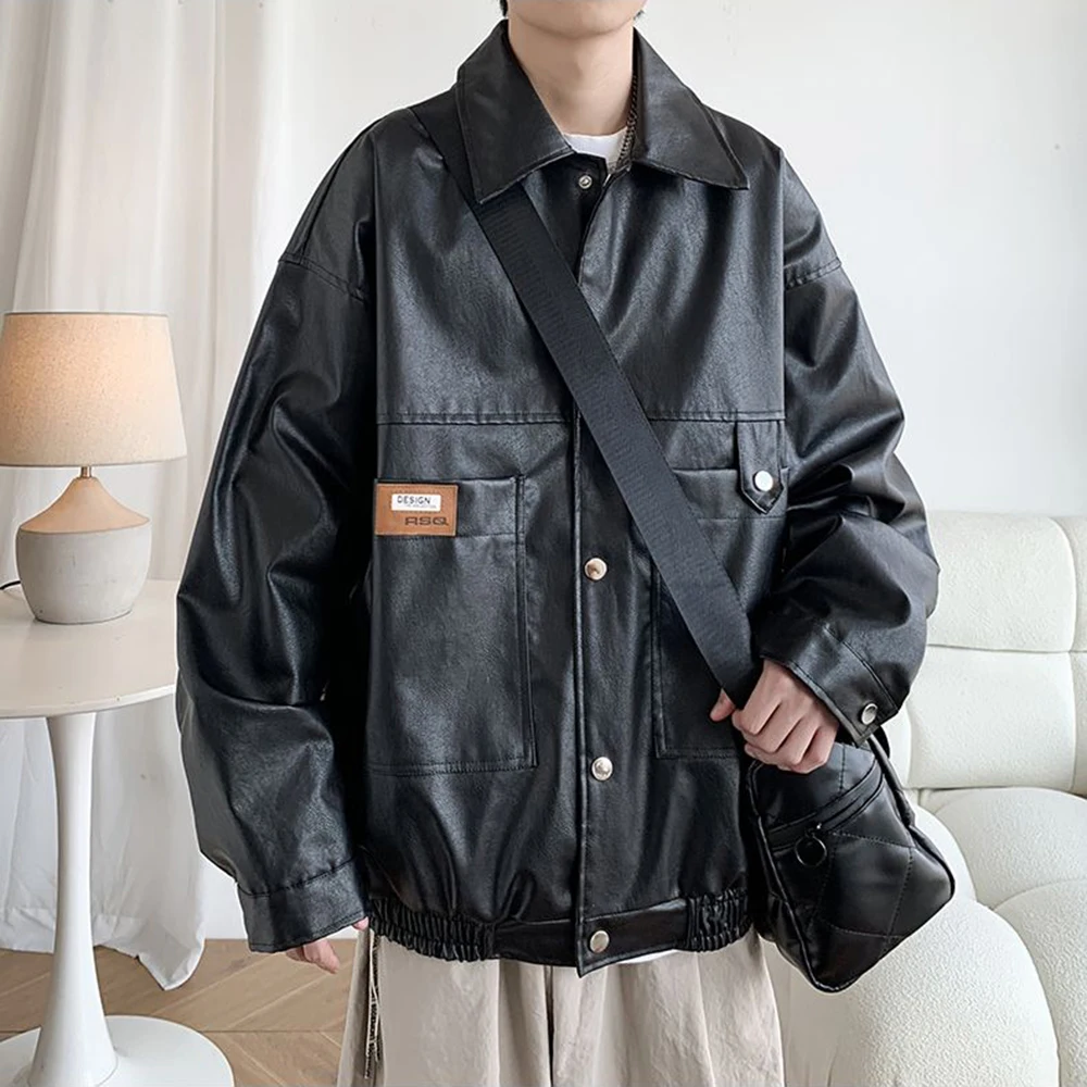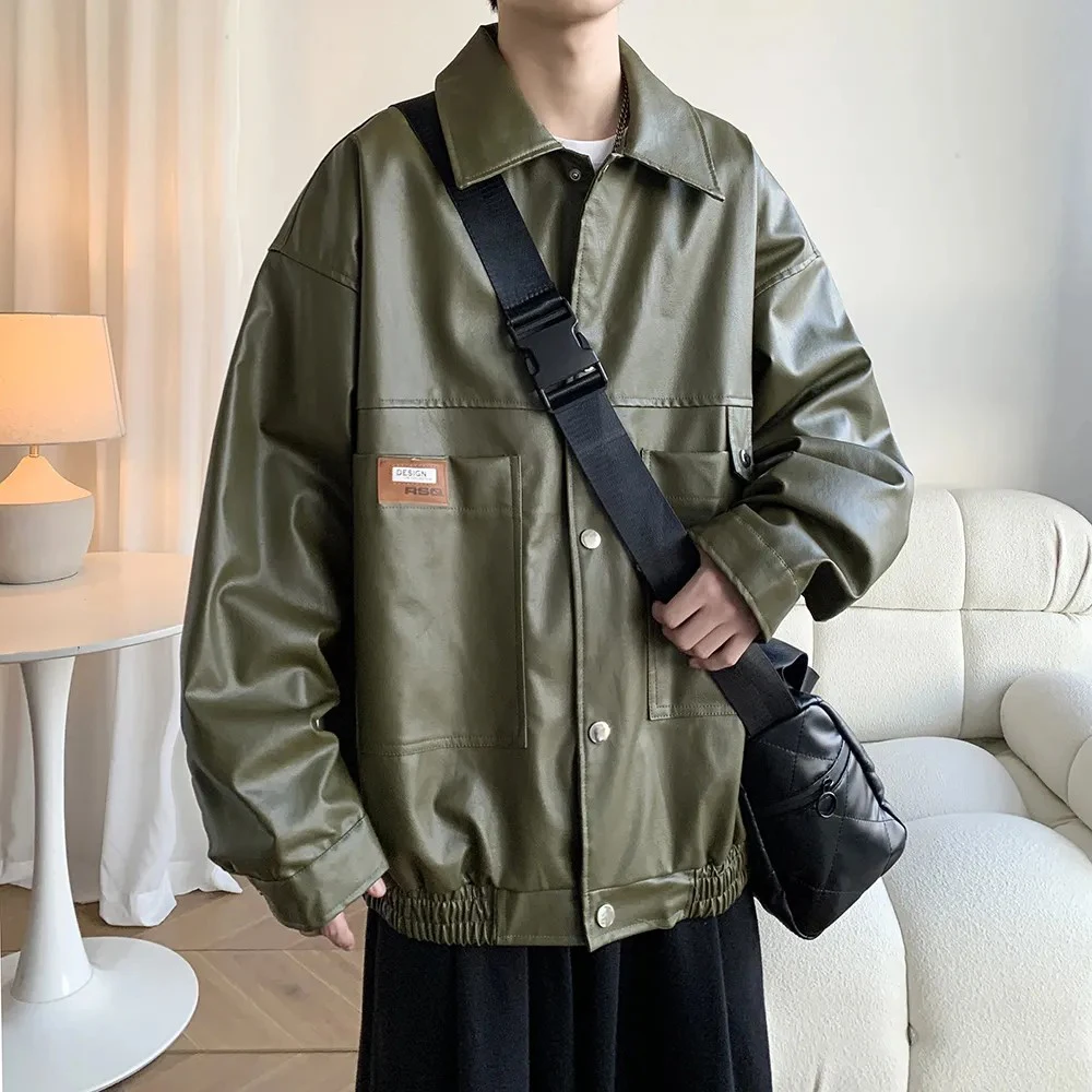 Hearujoy Men's Genuine Leather Large Pocket Motorcycle Leather Jacket Winter New Fashion Casual Loose Street All-match Button Jacket