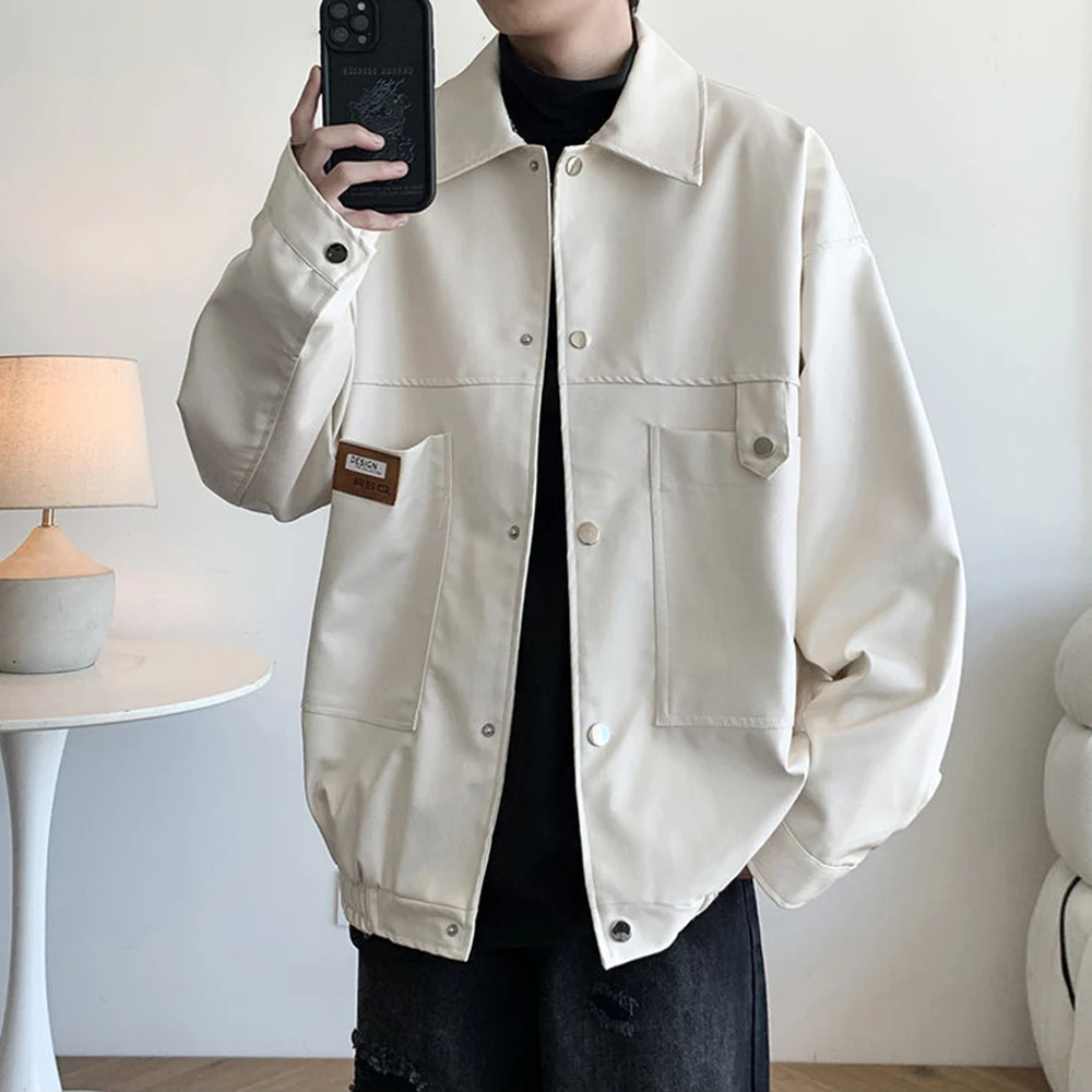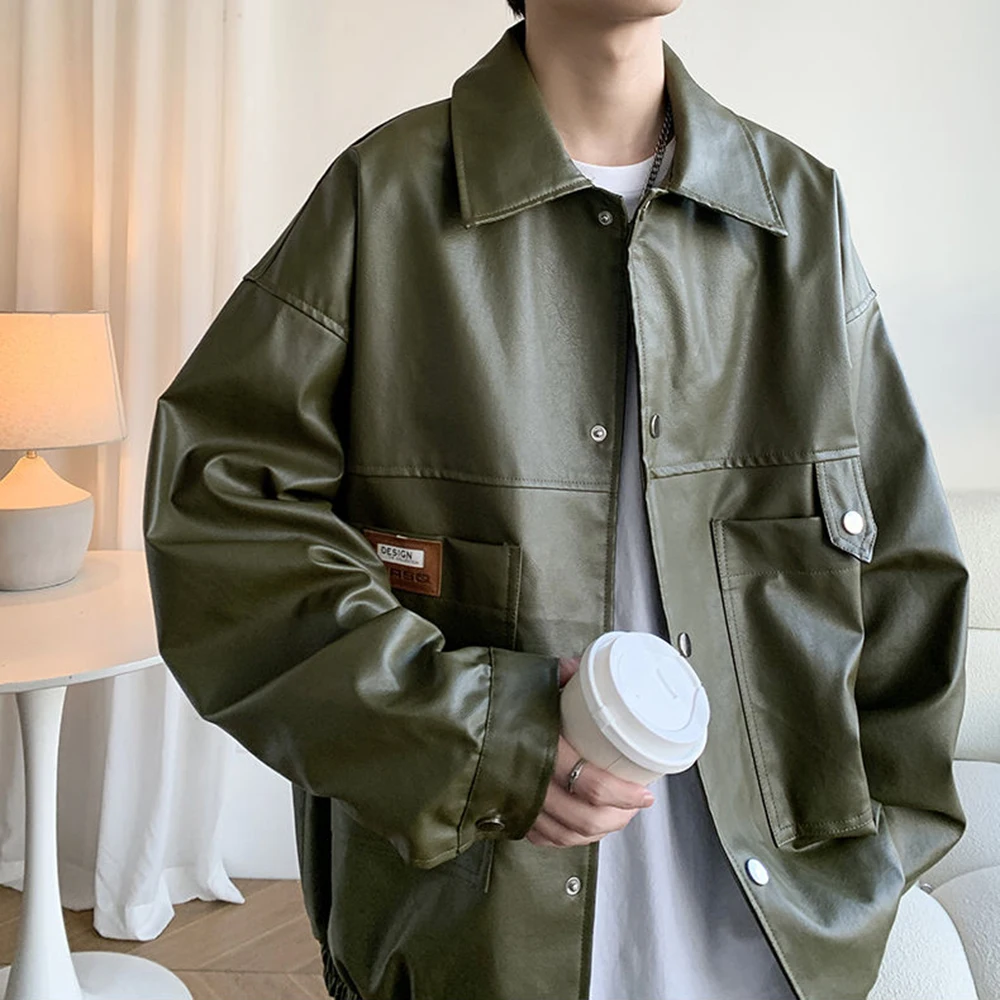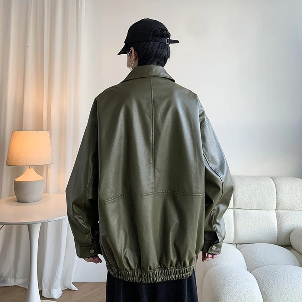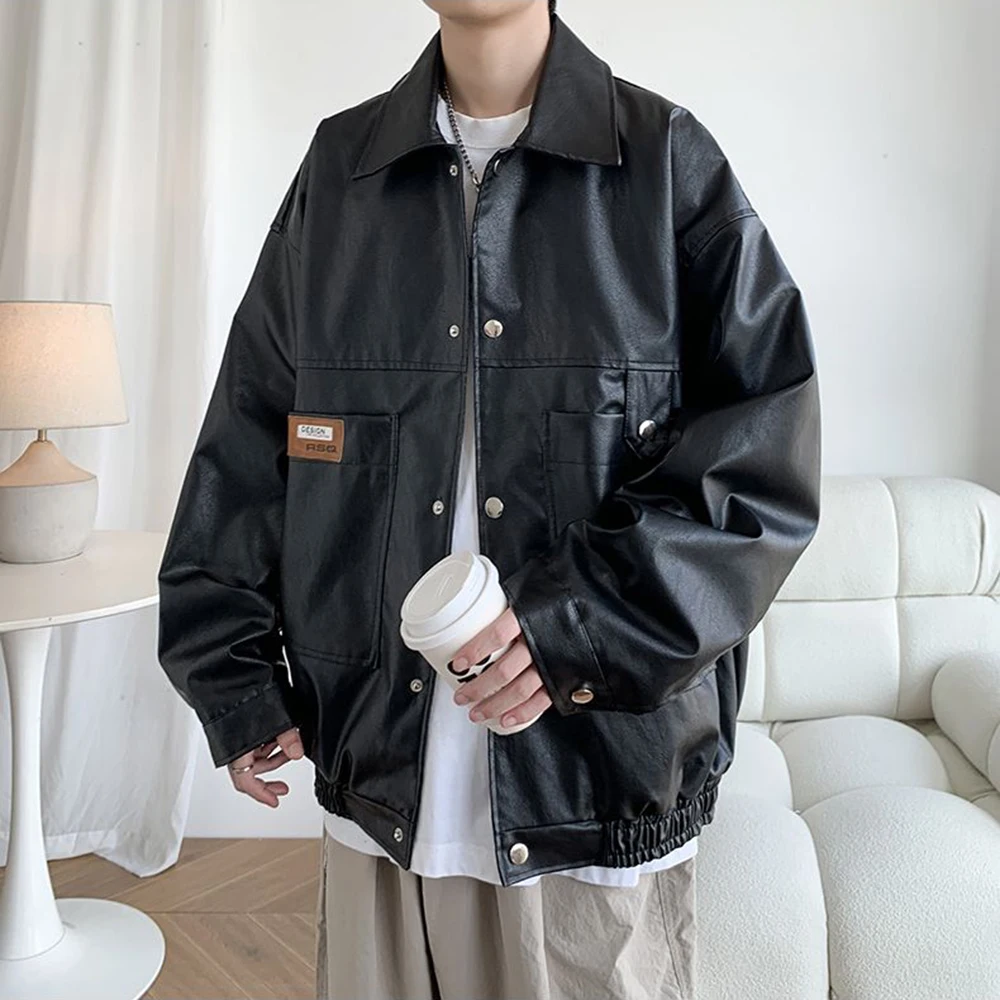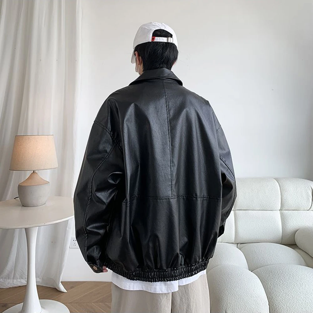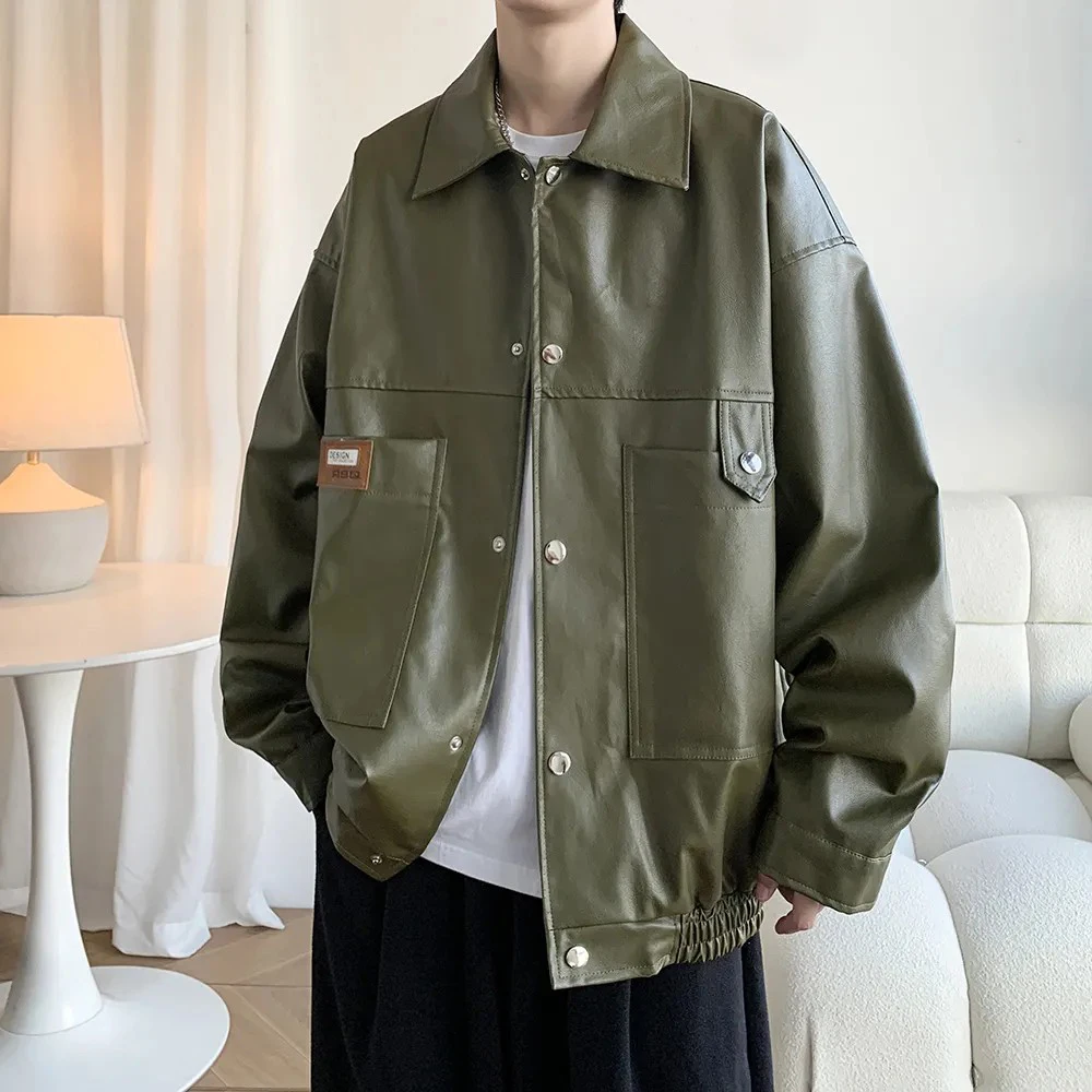 Hearujoy Men's Genuine Leather Large Pocket Motorcycle Leather Jacket Winter New Fashion Casual Loose Street All-match Button Jacket
