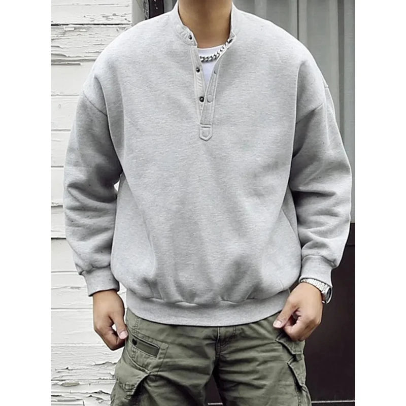 HEARUJOY - Men's Henry Collar Plate Warm Fashion Casual Round Neck Pullover Sweater Men's Spring and Autumn Style Trendy