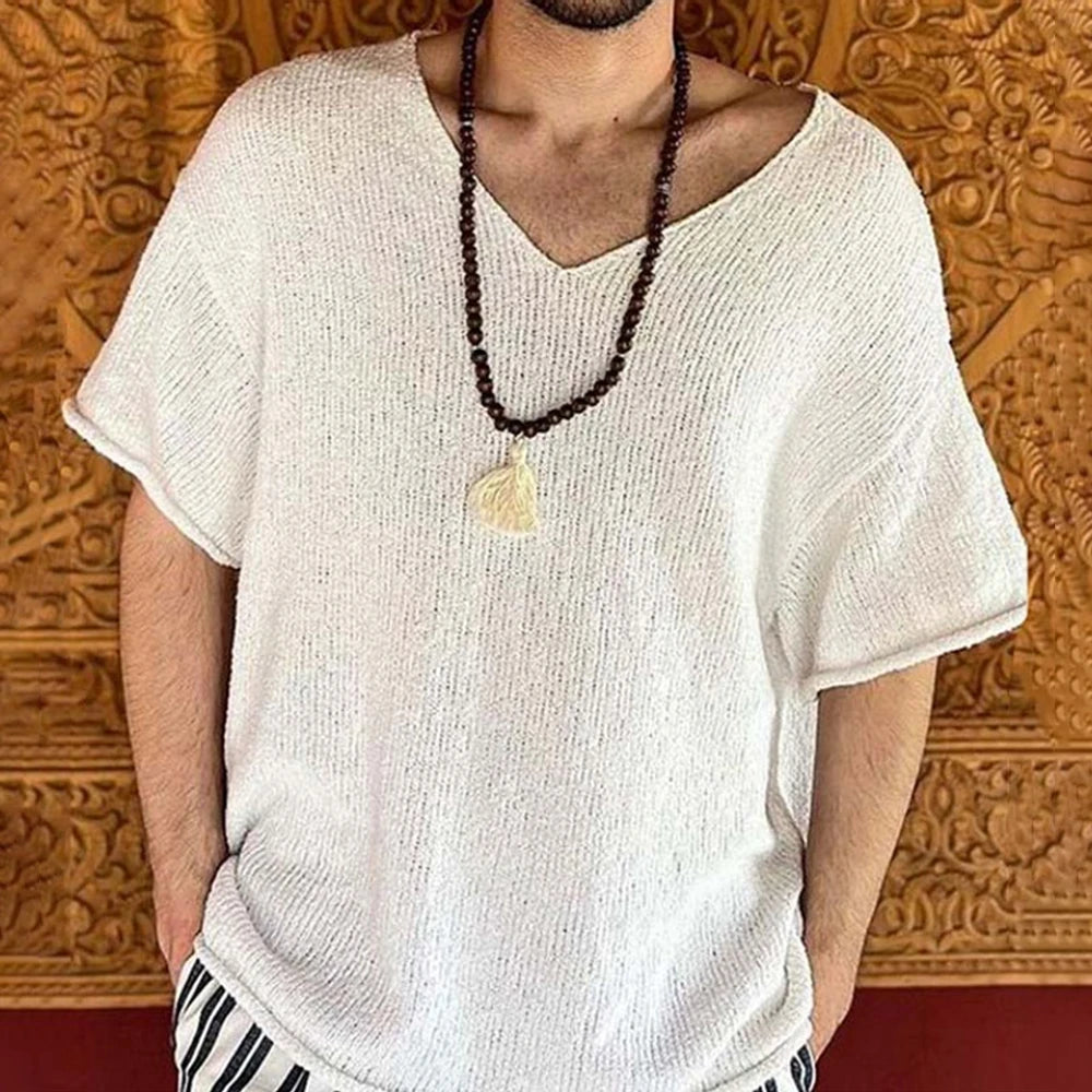 Hearujoy Mens Hollow Casual Knitted Tops Genderless 2024 Summer New Fashion Vacation White Loose Breathable Short Sleeve T-Shirt Unisex