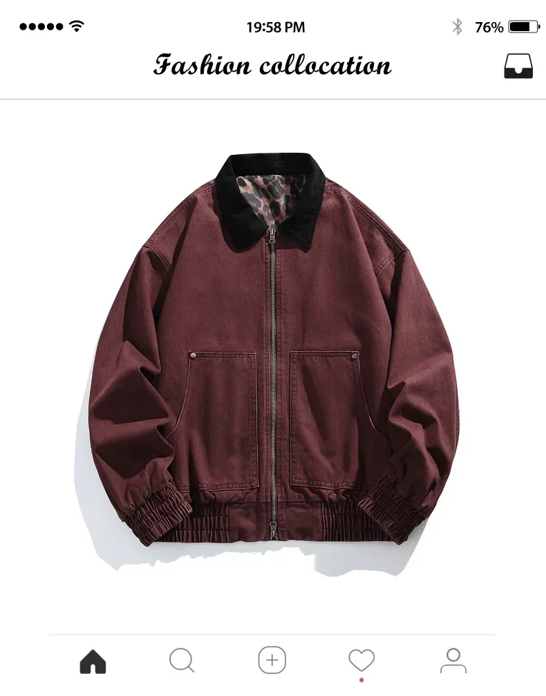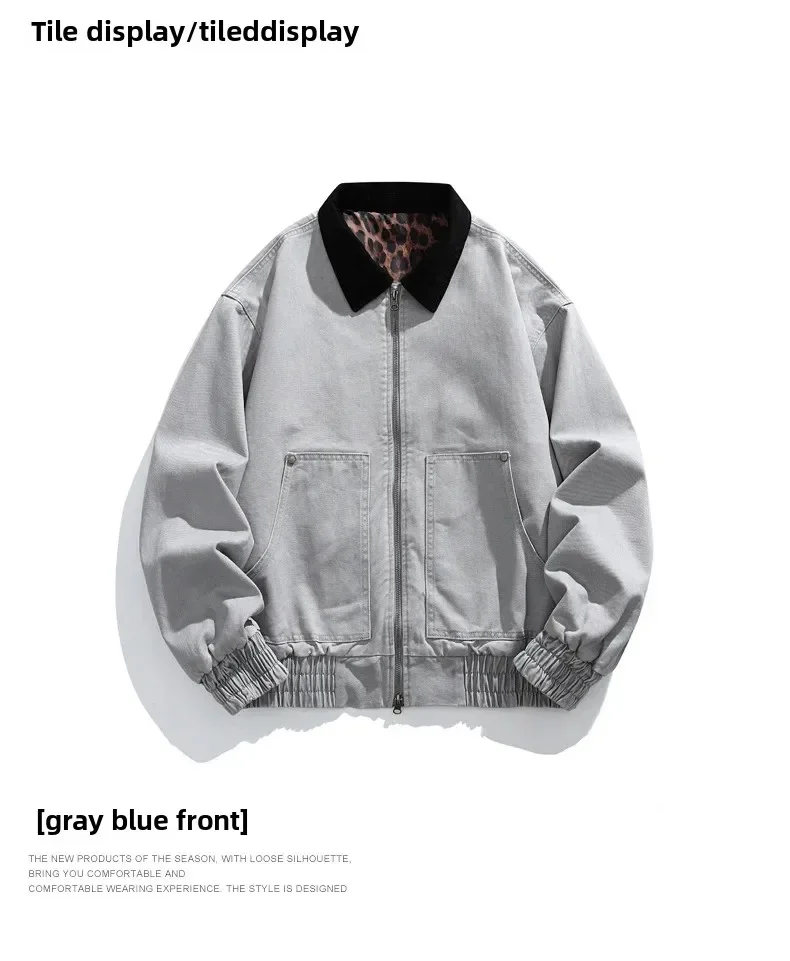 HEARUJOY - Men's Jacket Men's Workwear Collared Outerwear Vintage Pure Cotton Leopard Print Detroit Jacket Mens Leather Bomber Jacket Denim