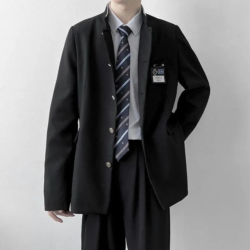 Hearujoy Mens Japanese College Student Uniform Jacket 2024 New Spring College Style Trend School Uniform Stand Collar Suit Jacket Unisex