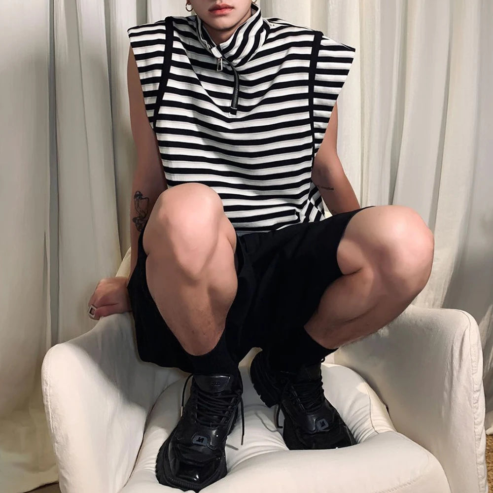 Hearujoy Mens Japanese Striped Casual Vest 2024 New Genderless Fashion Youth Trend Versatile High Collar Sleeveless Tank Top Unisex