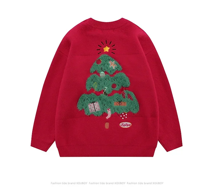 Hearujoy Men's Knitted Christmas Sweater Vintage Black Red Pullovers Sweaters and Jumpers Male Couple Winter Streetwear Harajuku