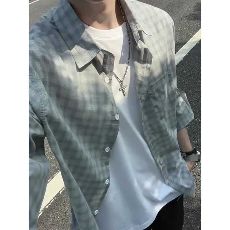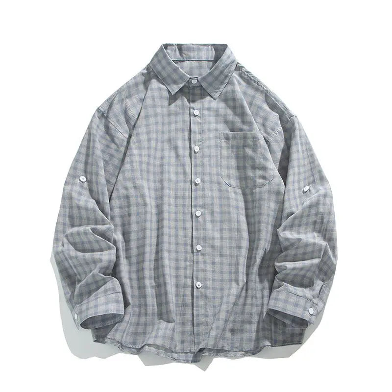 HEARUJOY - Mens Long Sleeve Plaid Shirt Casual Spring Autumn Fashion Shirt Streetwear Urban Comfort Fit Breathable Lightweight Wear