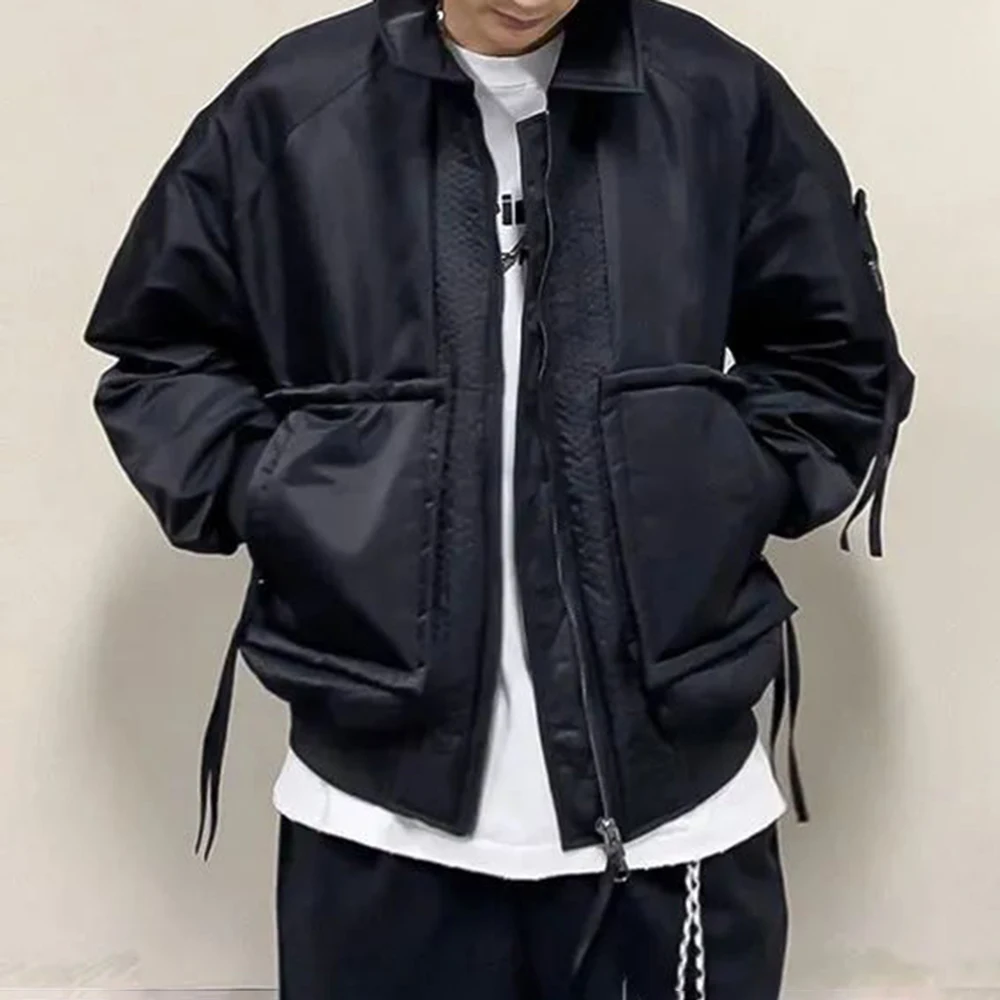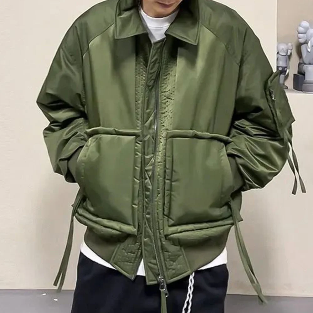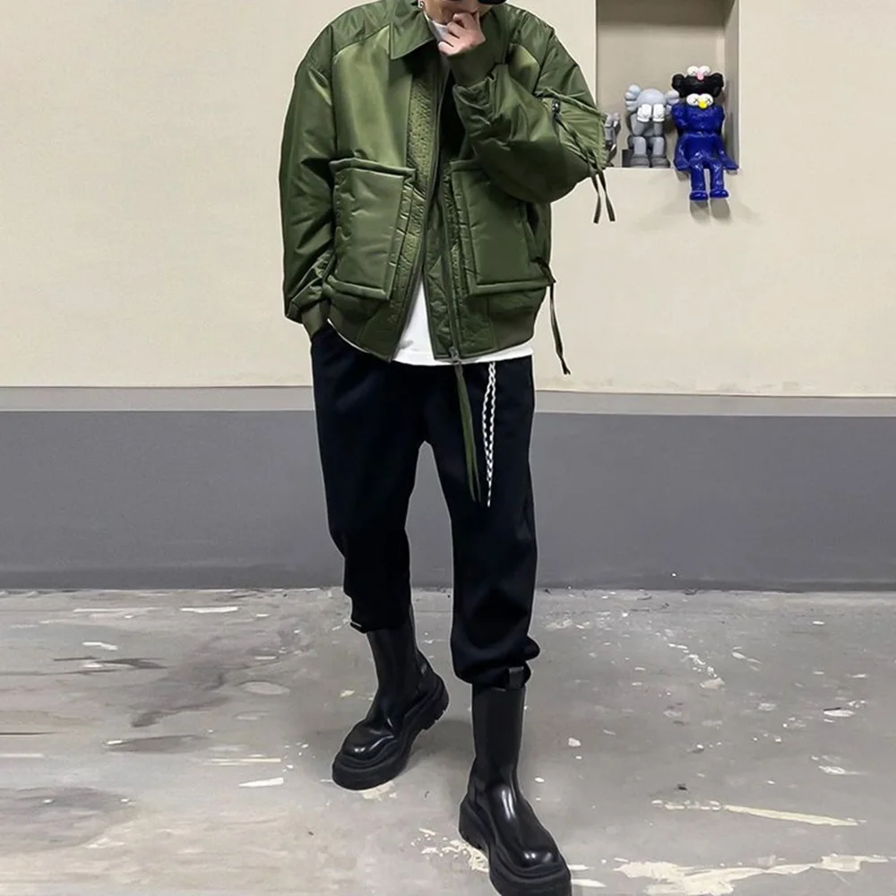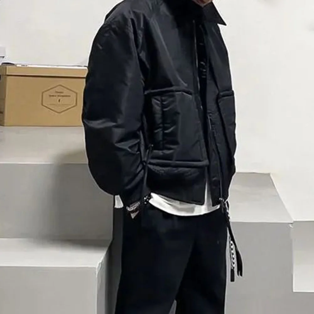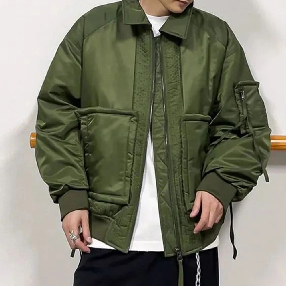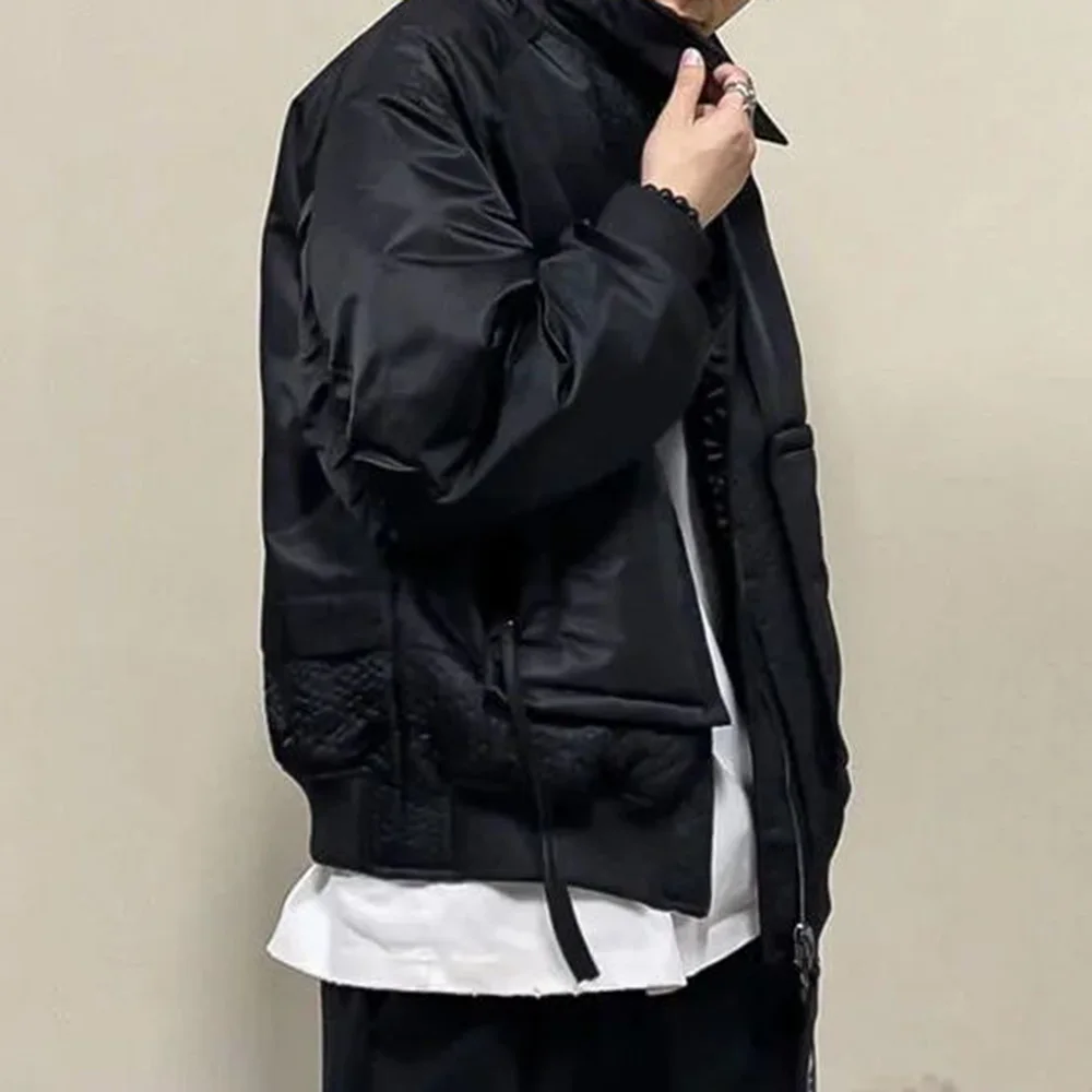 Hearujoy Mens Loose Down Jackets Autumn Winter New Trendy Warm Comfortable Versatile Stand-Up Collar Thickened Workwear Cotton Coats