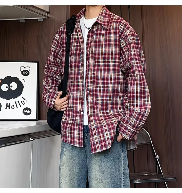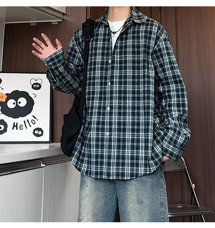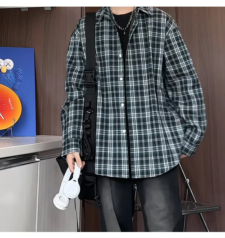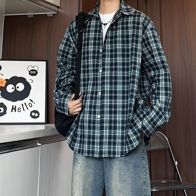HEARUJOY - Mens Loose Fit Plaid Shirt Business Casual Office Wear Classic Work Shirt for Young Professionals Student Relaxed Style Top