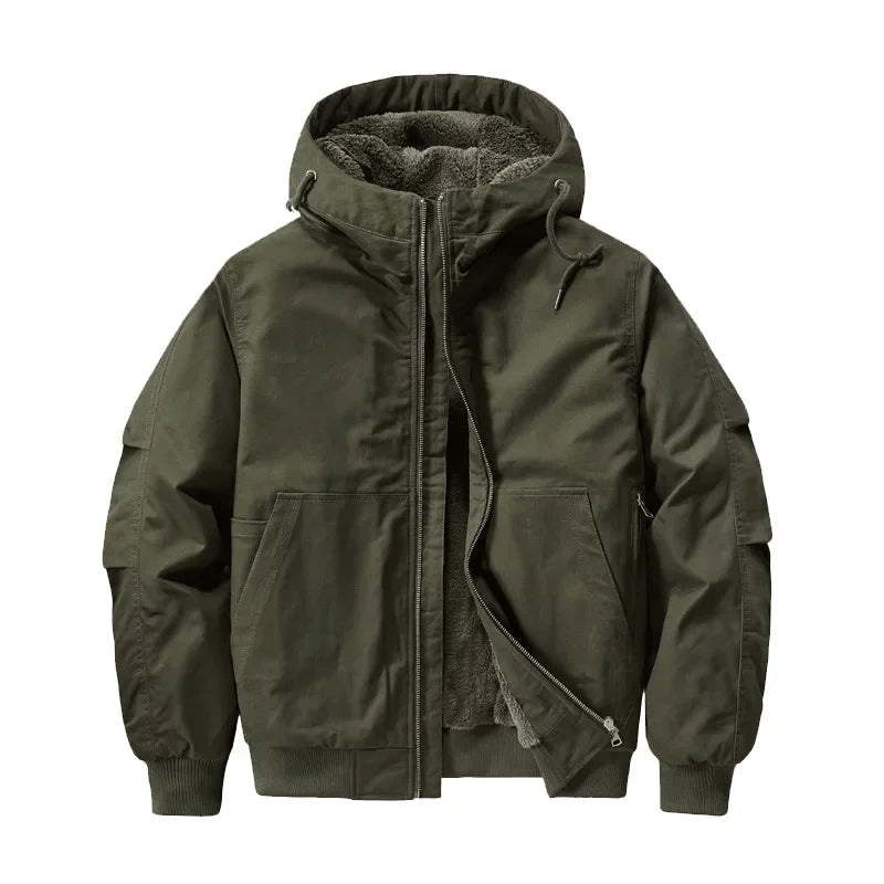 HEARUJOY - Men's New Autumn and Winter Cotton Jacket with Fleece Thickened Cargo Flight Short Plus Size Hooded Quilted Jacket