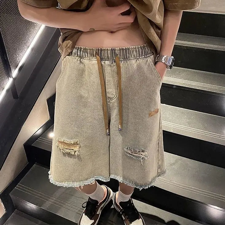 HEARUJOY - Men's New Style Spliced button Zipper Pockets Fashionable Loose Versatile Casual Denim Shorts