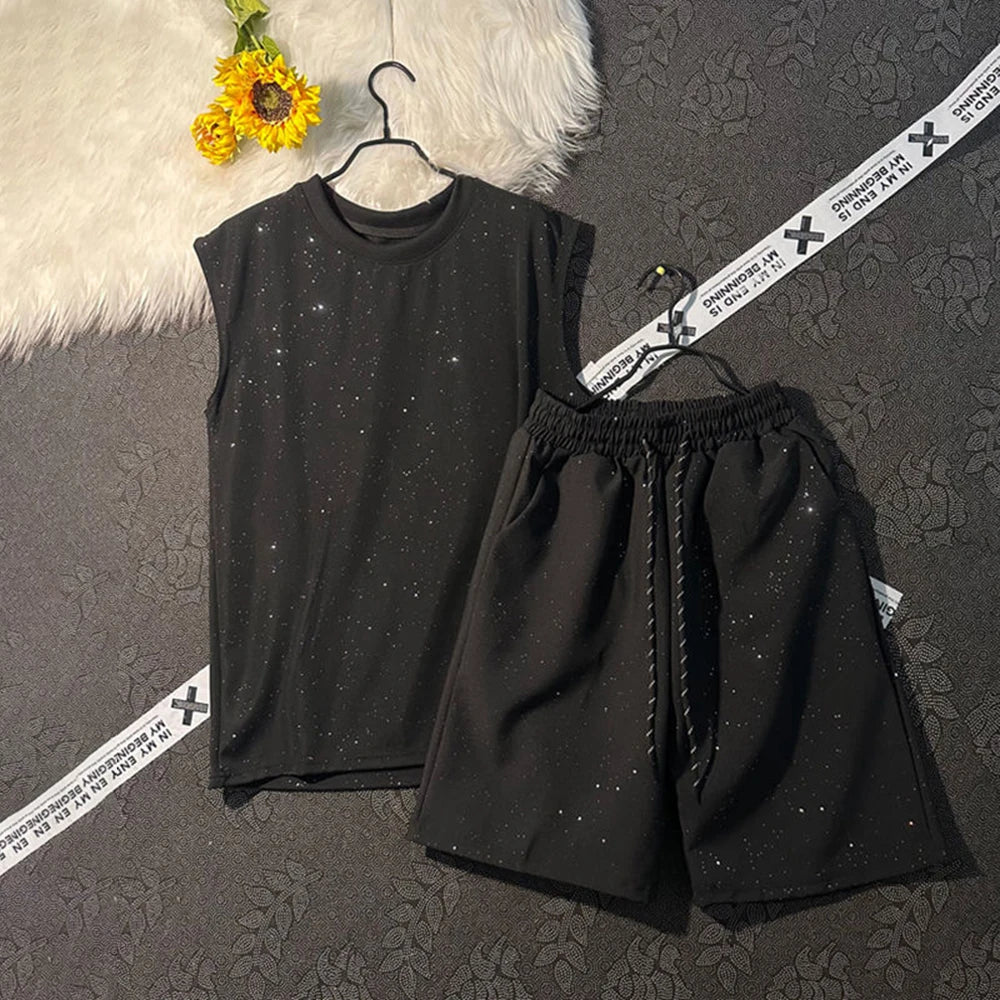 HEARUJOY - Mens Night Sky Casual Thin Vest Shorts Sets Spring/Summer Streetwear Fashion Youth Campus Two-Piece Sets Men'S Clothing 2025 New
