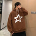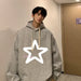 HEARUJOY - Men's Oversized Hoodie Off White 5XL Hoodies with Hat Over size for Men Star Print Man Casual Wear Hoody Male Sweatshirt