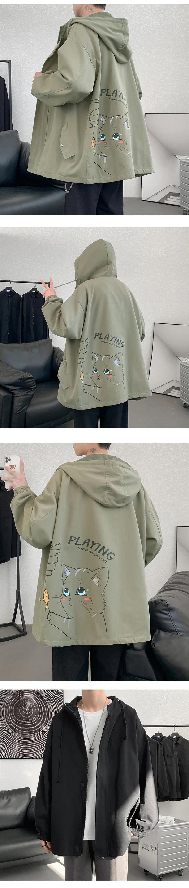 HEARUJOY - Men's Oversized Jackets Cotton With Hat Man Cat Print Coat Casual Wear Autumn 5XL Safari Style Jacket For Men Fashion Outerwear