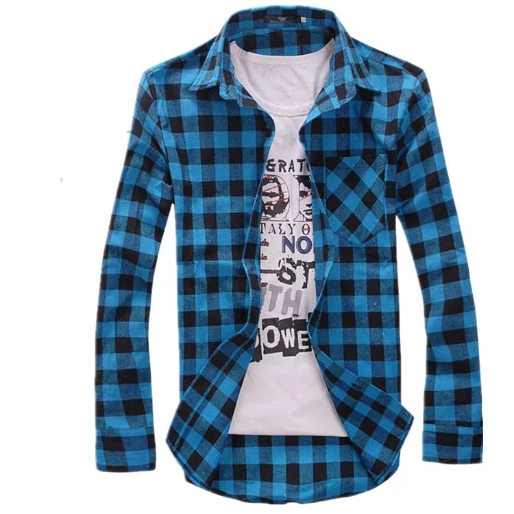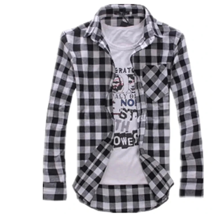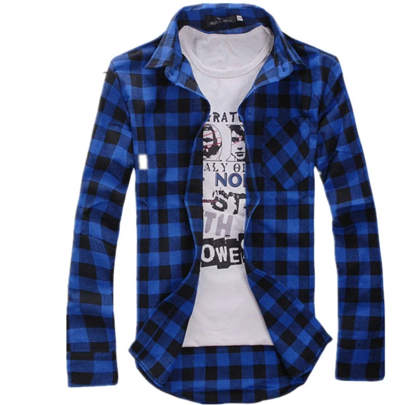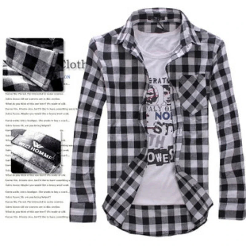 HEARUJOY - Men's Plaid Shirt Button Down Casual Check Shirt Long Sleeve Slim Spring Autumn Male Brand Soft Comfortable Fashion