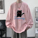 HEARUJOY - Men's Plain T-shirts Cotton Full Sleeves 5XL Fashion White Mens Oversized T Shirt Casual Wear Funny Cat Print Tee Shirts for Men