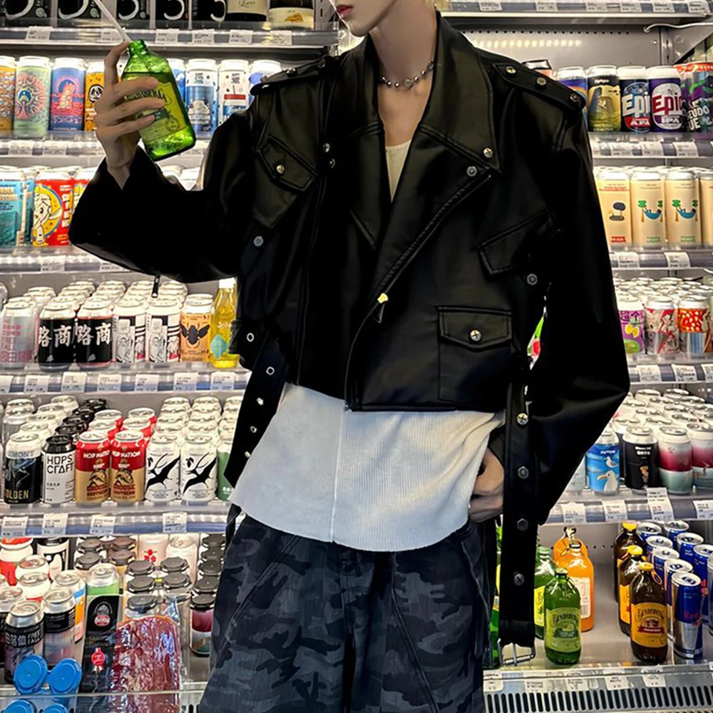 HEARUJOY - Mens Pu Leather Jacket Workwear Rivet Motorcycle Biker Pu Jacket Streetwear Fashion All-Match Long-Sleeve Tops Men'S Clothing
