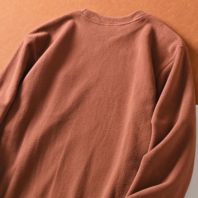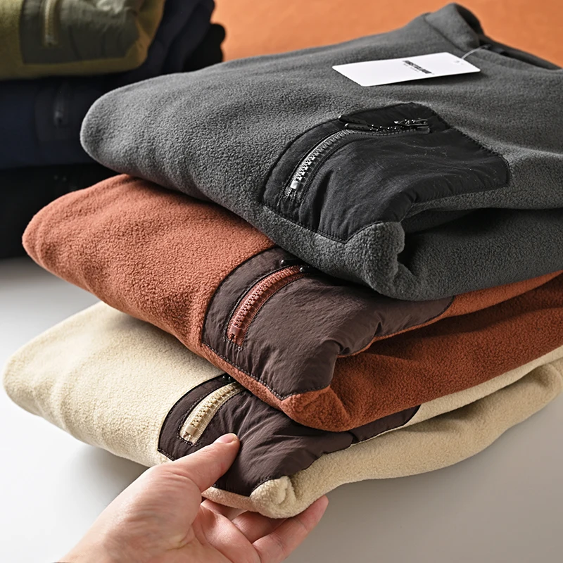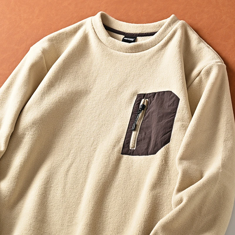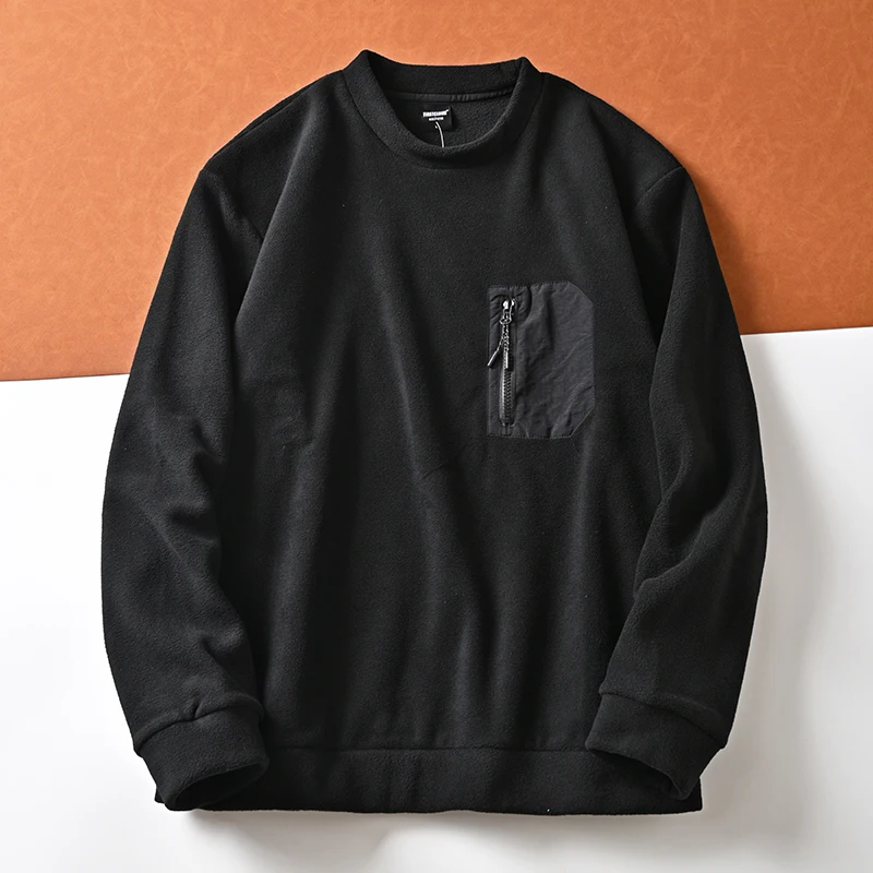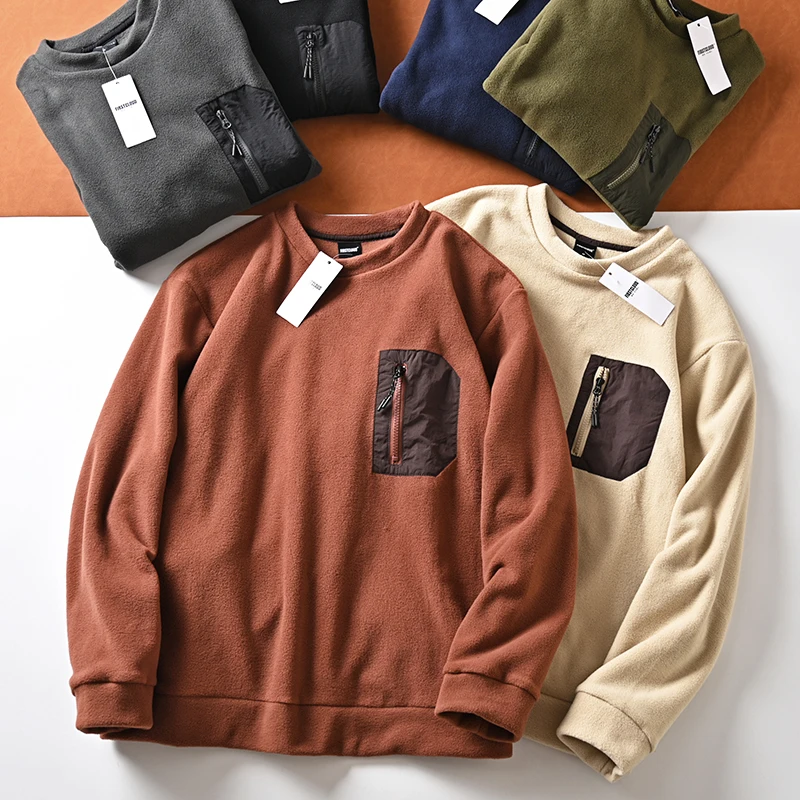 HEARUJOY - Men's Round Neck Casual Fleece Sweater Shirt Trend Versatile Chest Zipper Pocket Warm Pullover Tops