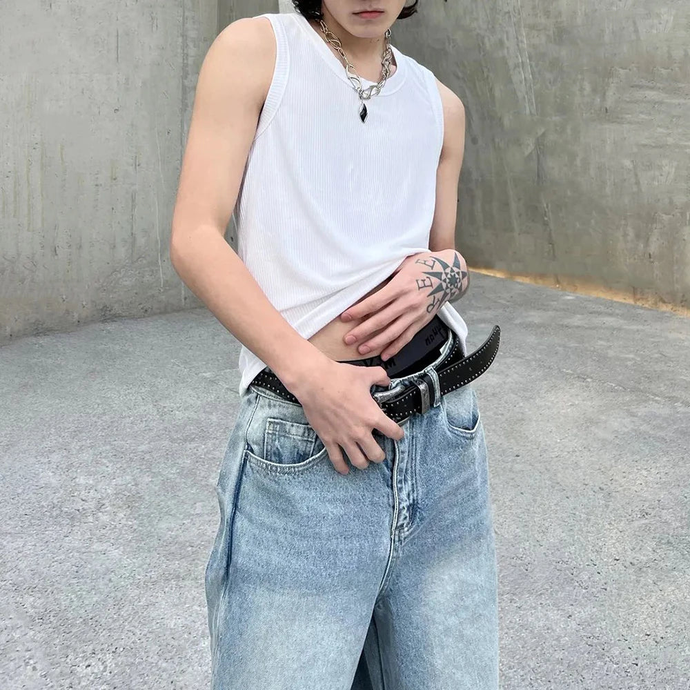 Hearujoy Mens Sexy Fitness Casual Vest 2024 New Streetwear Simple Breathable Sports Solid Color Comfortable Versatile Tank Top For Men