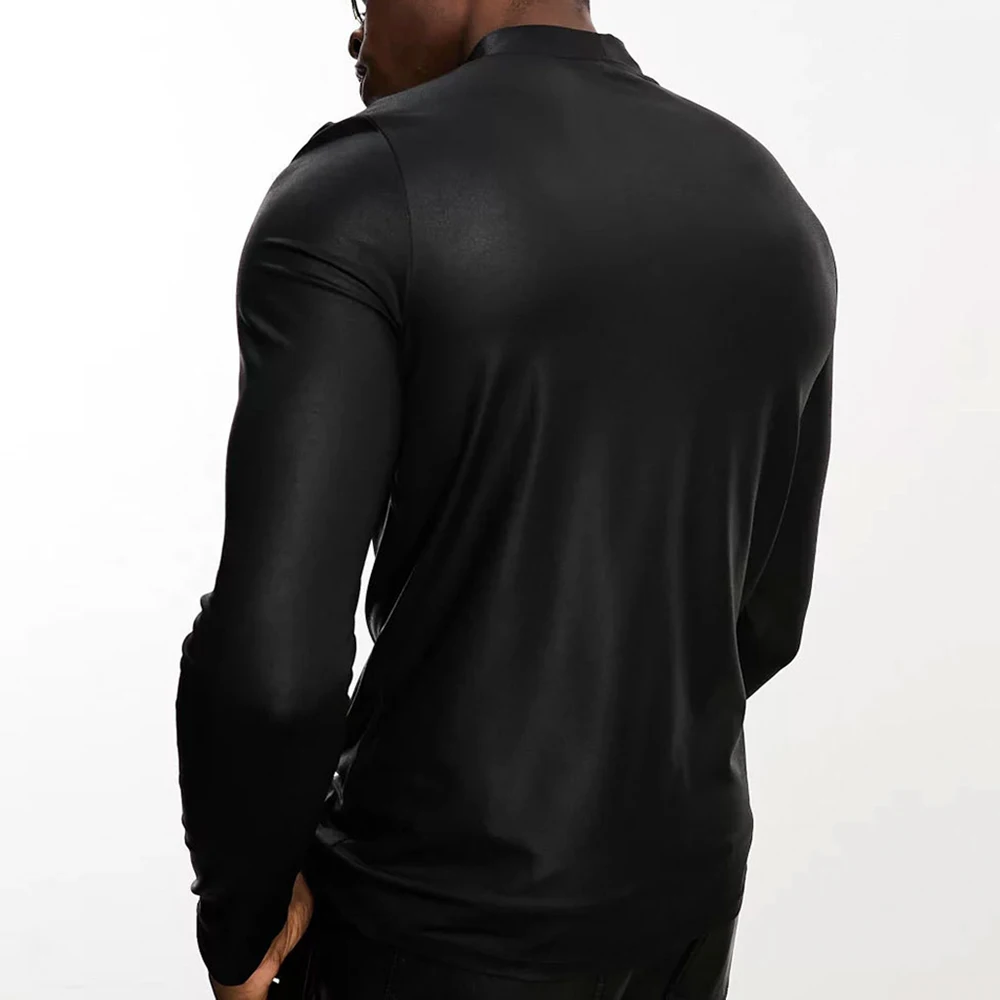 Hearujoy Mens Sexy Slim Matte PU Leather Long Sleeve Tights Autumn Genderless Nightclub Fashion Simple Youth Trend T-shirt Unisex