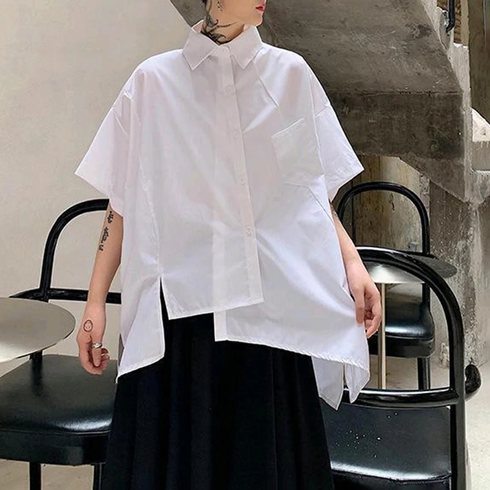 HEARUJOY - Mens Shirt Irregular Five-Point Sleeves Dark Casual Shirt Streetwear Fashion Y2k Splicing Short-Sleeved Top Men'S Clothing