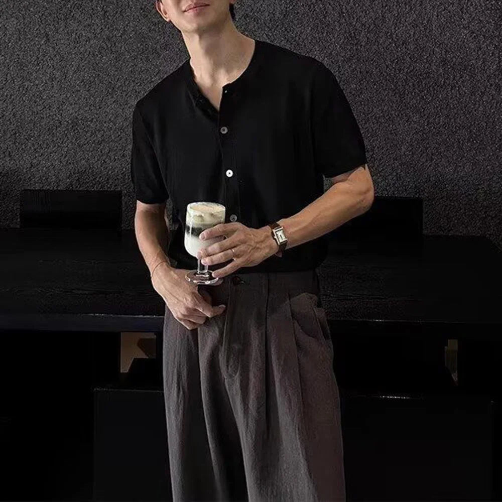 HEARUJOY - Mens Shirt Knitted Casual Shirt Summer Daily Solid Color Simple Versatile Soft Comfortable Short-Sleeve Top Men'S Clothing