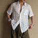 HEARUJOY - Mens Shirt Lace See-Through Transparent Geometric Shirt Summer Beach Vacation Hawaiian Slim Short Sleeve Top Men'S Clothing