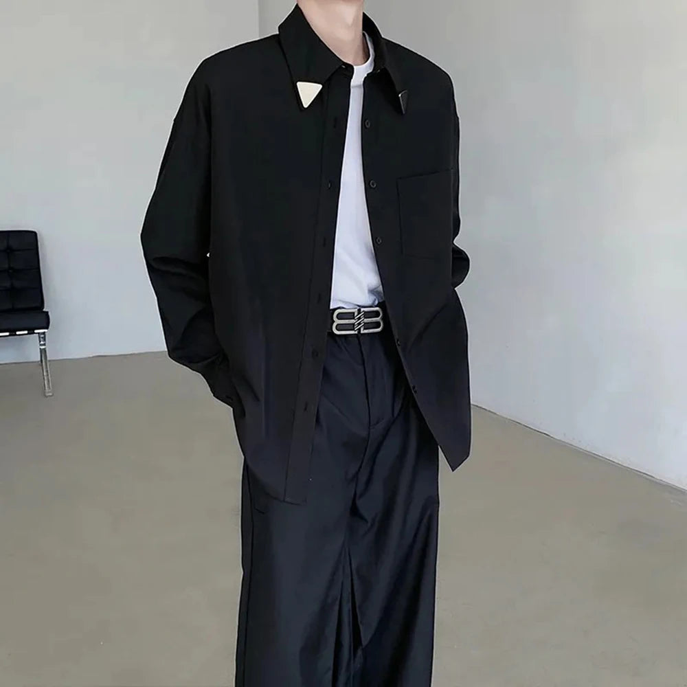 HEARUJOY - Mens Shirt Metal Decoration Business Casual Shirt British Elegant Commuting Solid Color Simple Long-Sleeve Top Men'S Clothing