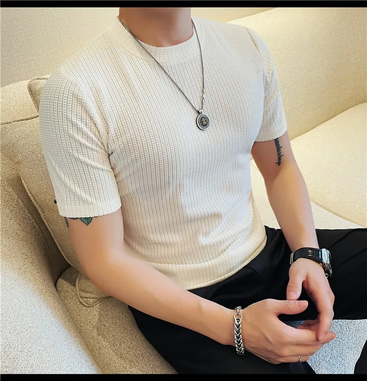 HEARUJOY - Men's Slim Stretch O-Neck Tee Trio | Breathable Knit T-Shirts in Black, White & Camel Fashion Men's Everyday Joker Top