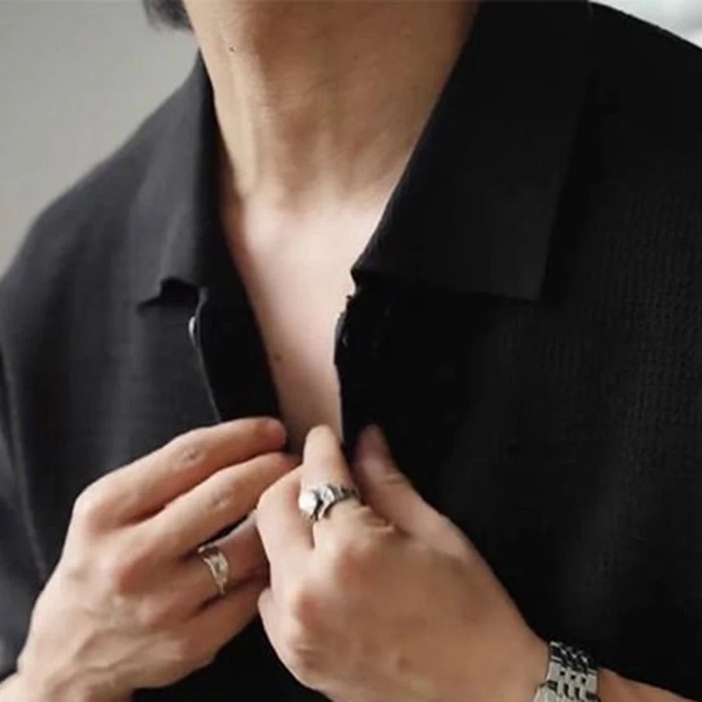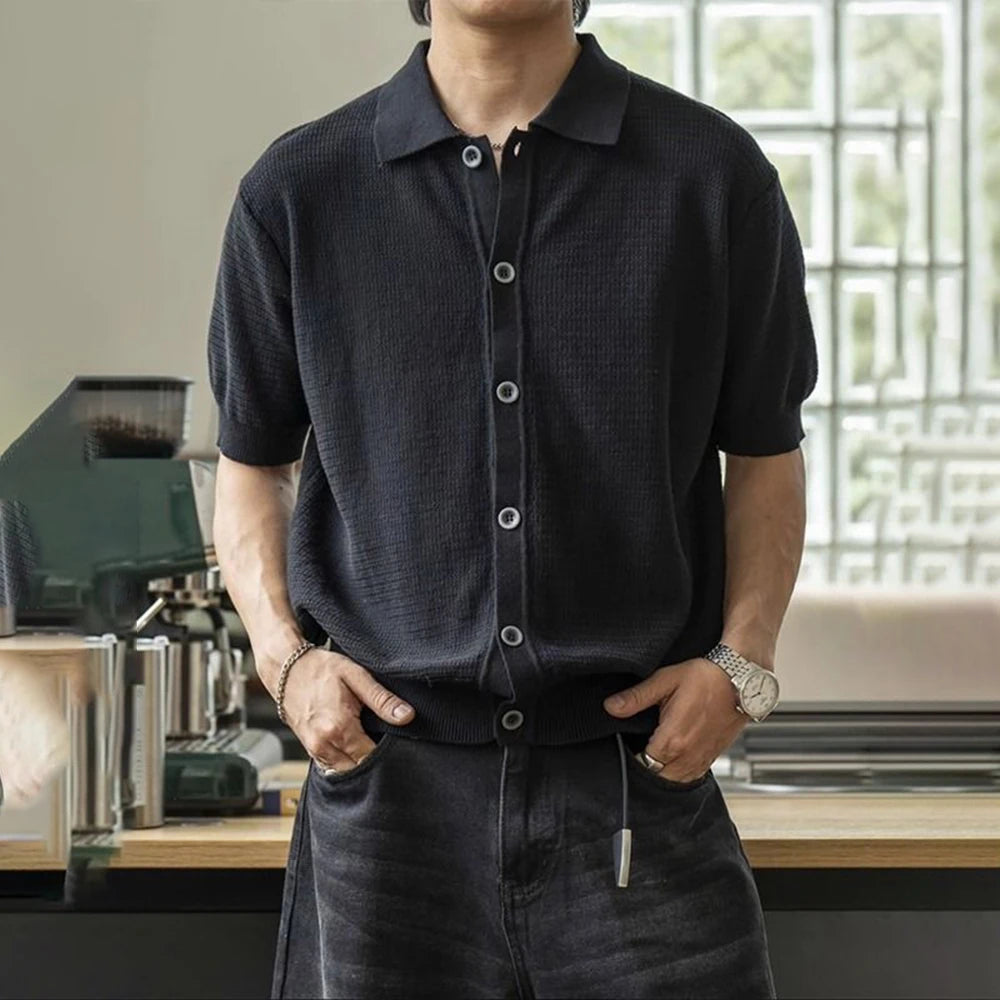 HEARUJOY - Men's Solid Color Knitted Short-Sleeved Shirt American Retro Fashion Trend Loose Casual Simple Breathable Niche New Men's Tops