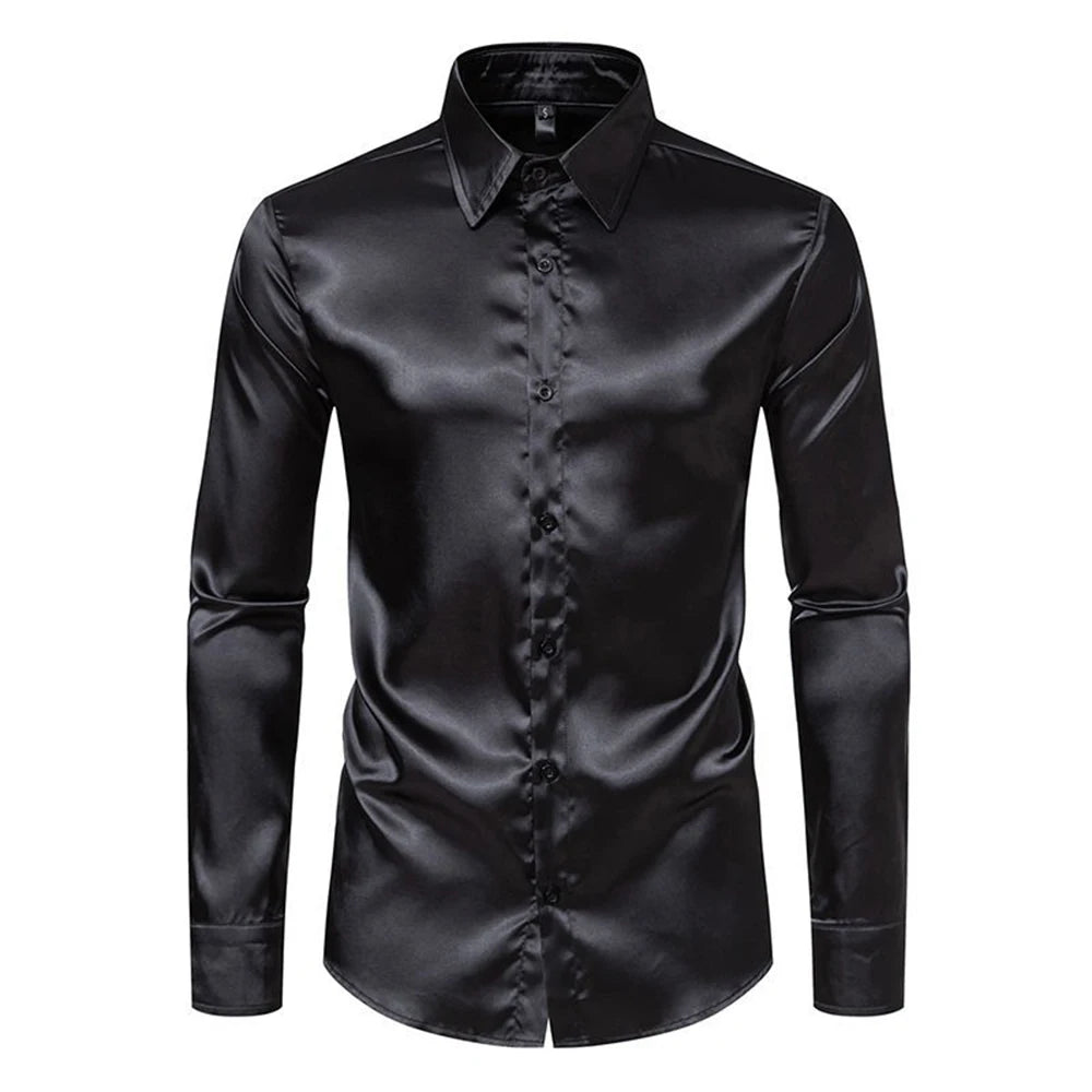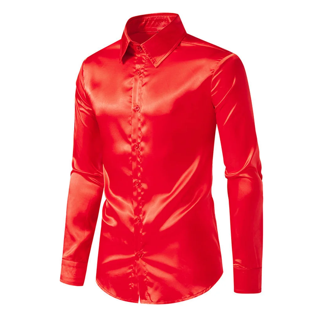 HEARUJOY - Men's Solid Color Shiny Long-Sleeved Shirt Retro Fashion American Trend Street Loose Niche Party Performance Summer Men's Tops