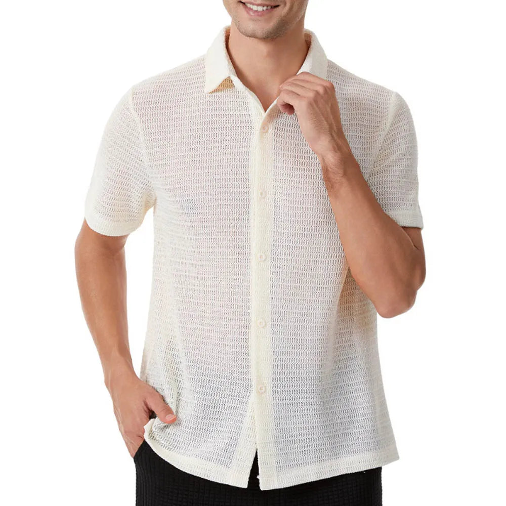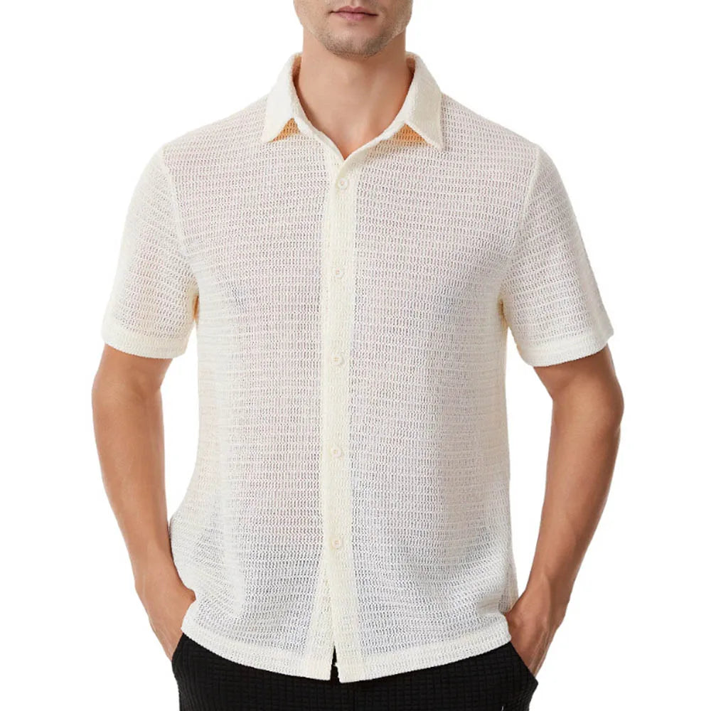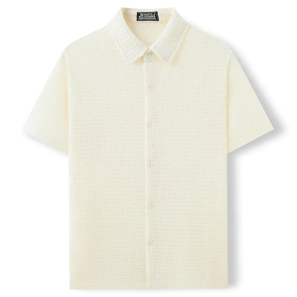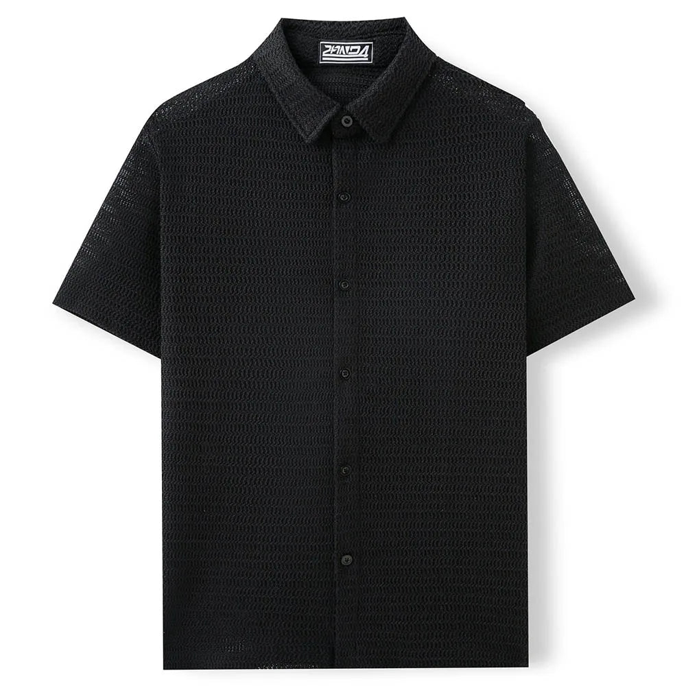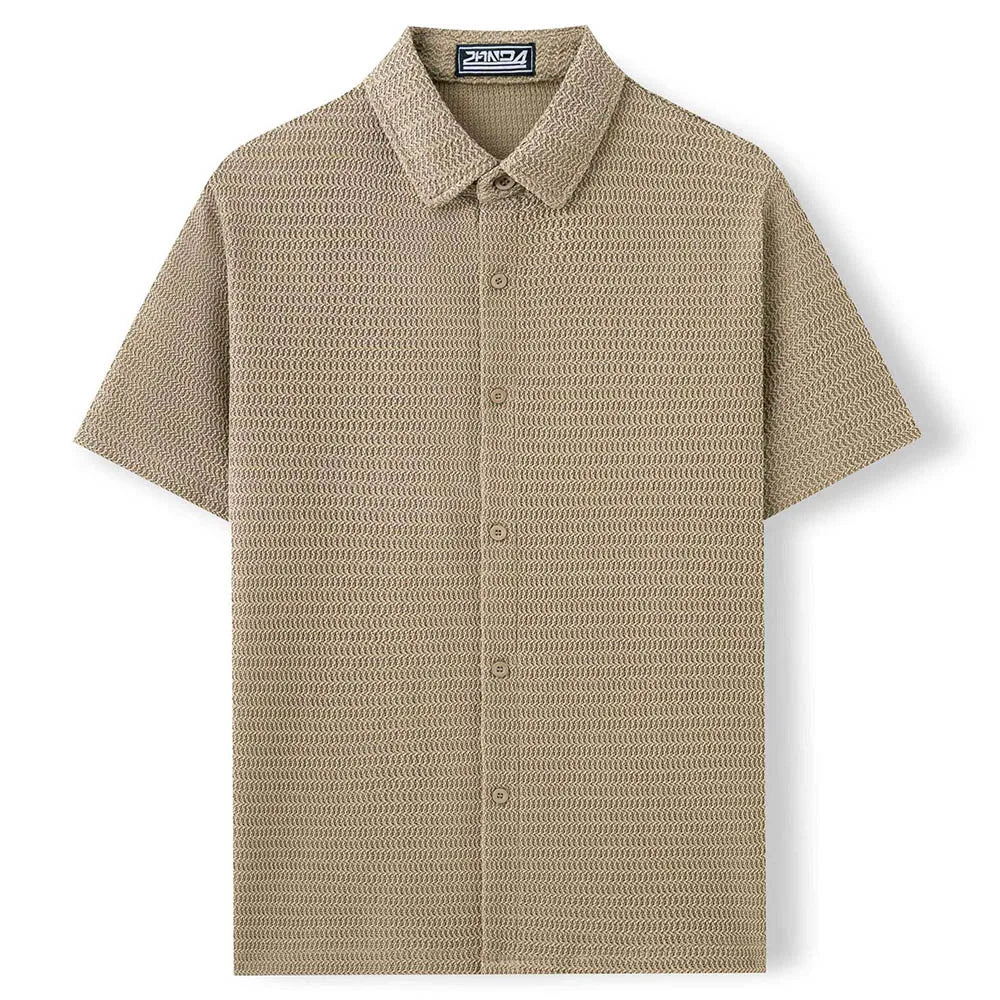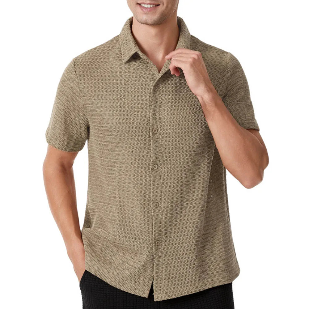 HEARUJOY - Men's Solid Color Short-Sleeved Shirt American Retro Fashion Trend Street Loose Breathable Casual Daily Niche Men's Tops