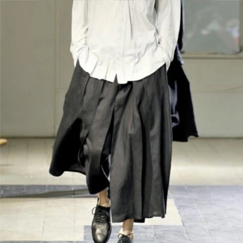 Hearujoy Men's spring/summer European and American culottes nine minutes wide leg trousers men's slacks black plus-size runway show